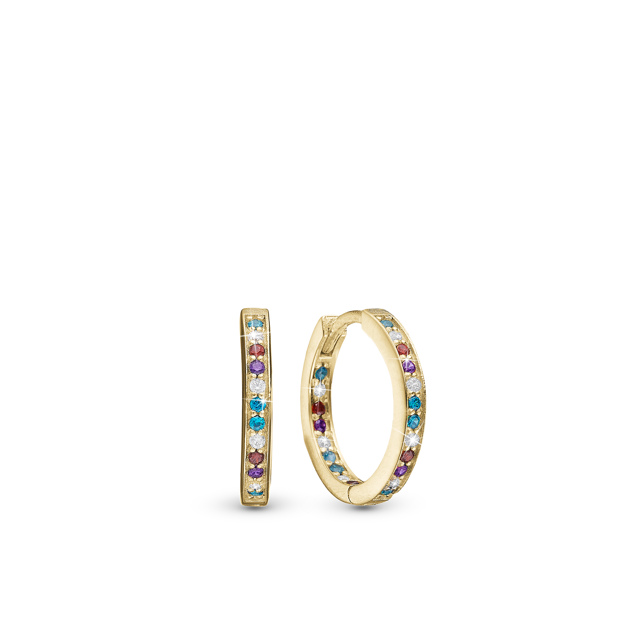 ColoWatchful World Hoops - Polished Gold Plated Sterling Silver with 42 Multi color Cubic Zirkonia