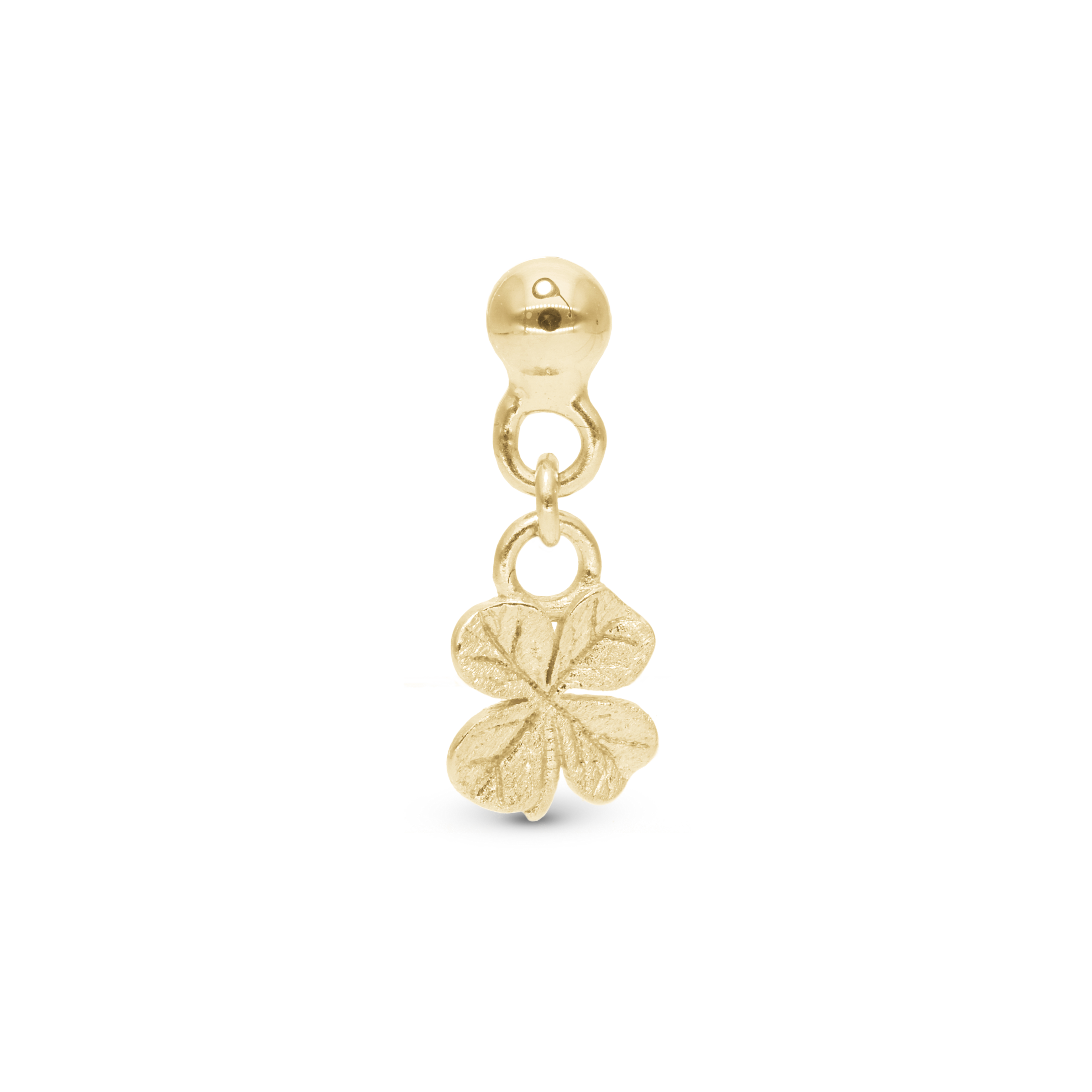 Dangling FoWatch Leaf Clover Simple Earring Stud / Single Stud - Brushed Gold Plated Sterling Silver