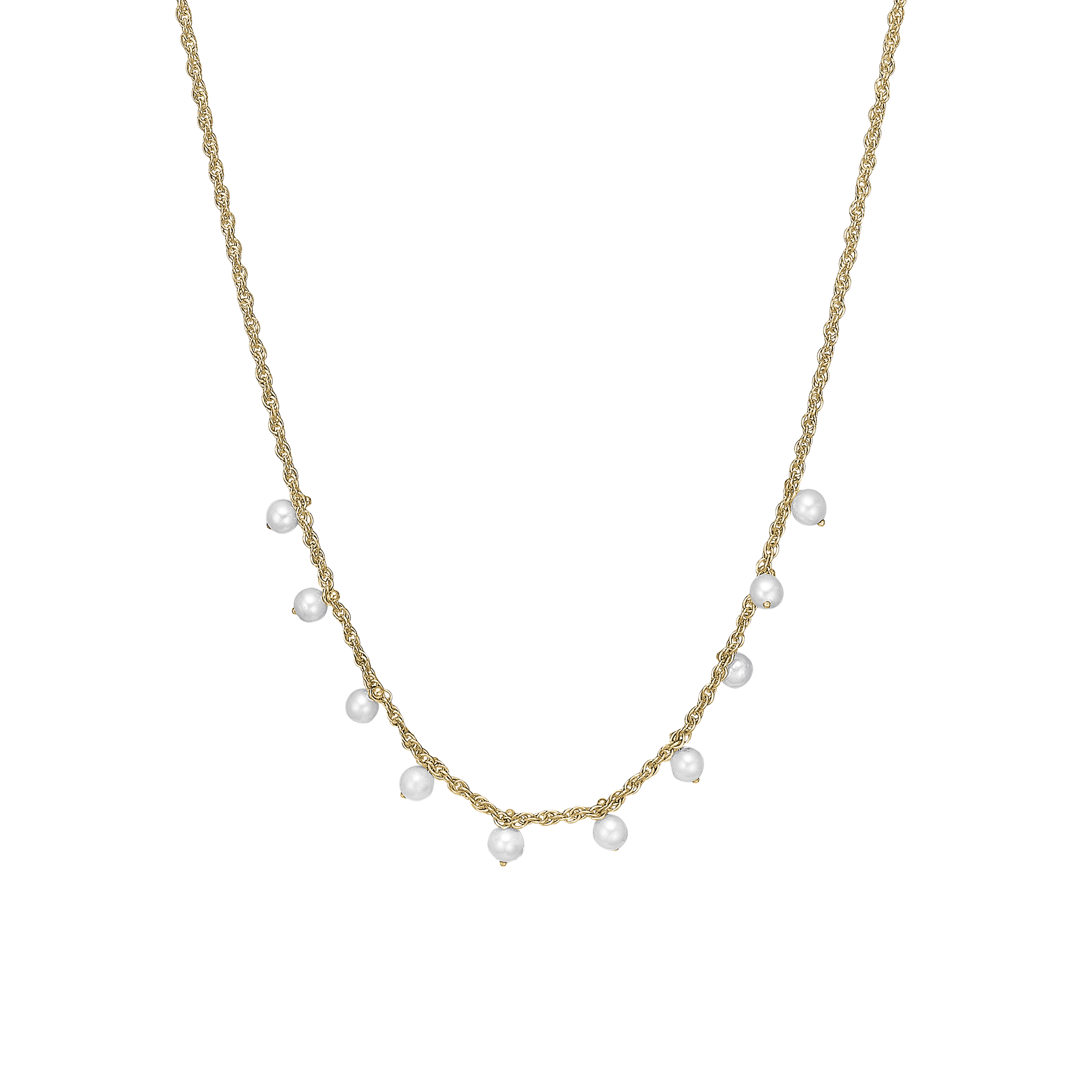 Decrease quantity for Dangling Pearls Necklace - Gold Plated Sterling Silver with 10 white Freshwater Pearls