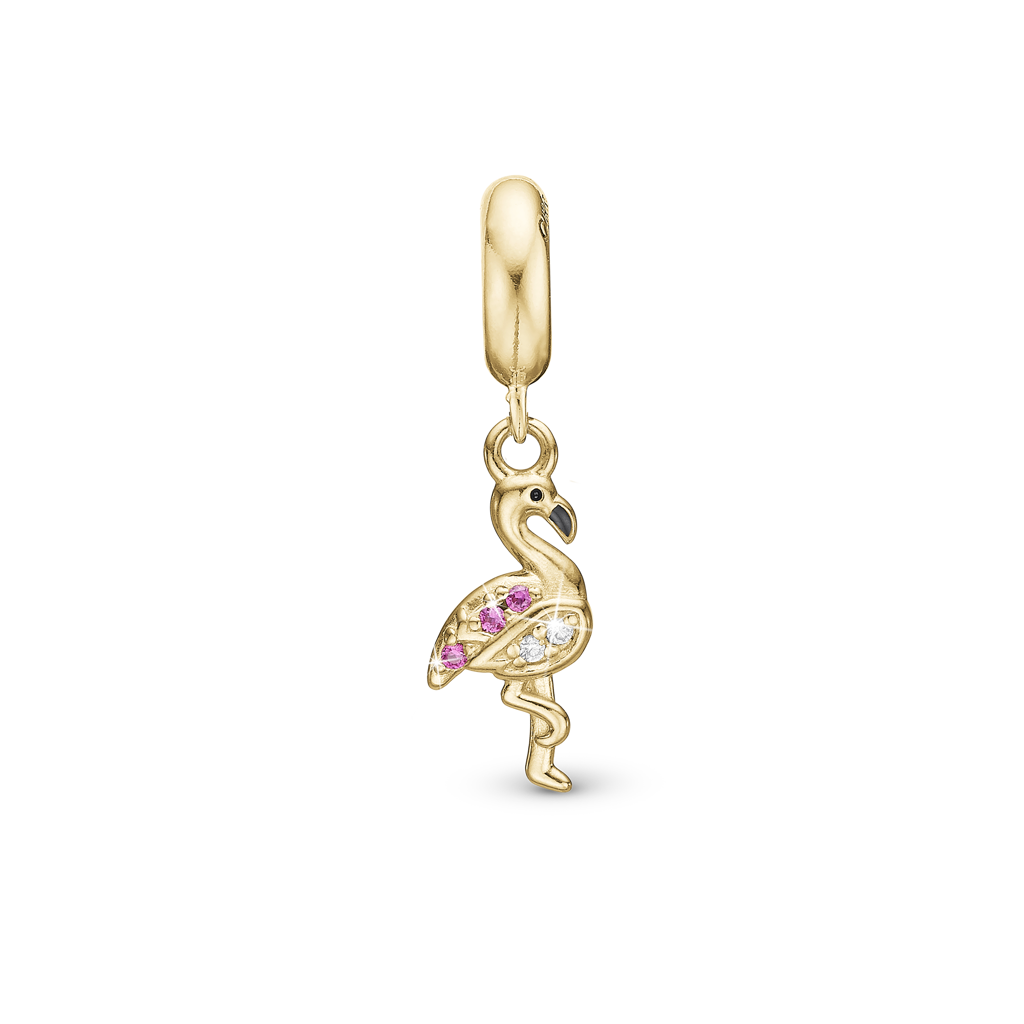 Flamingo - Dangle Charm 4 mm with Bracelet - Gold-Plated Sterling Silver with 5 Cubic Zirconia