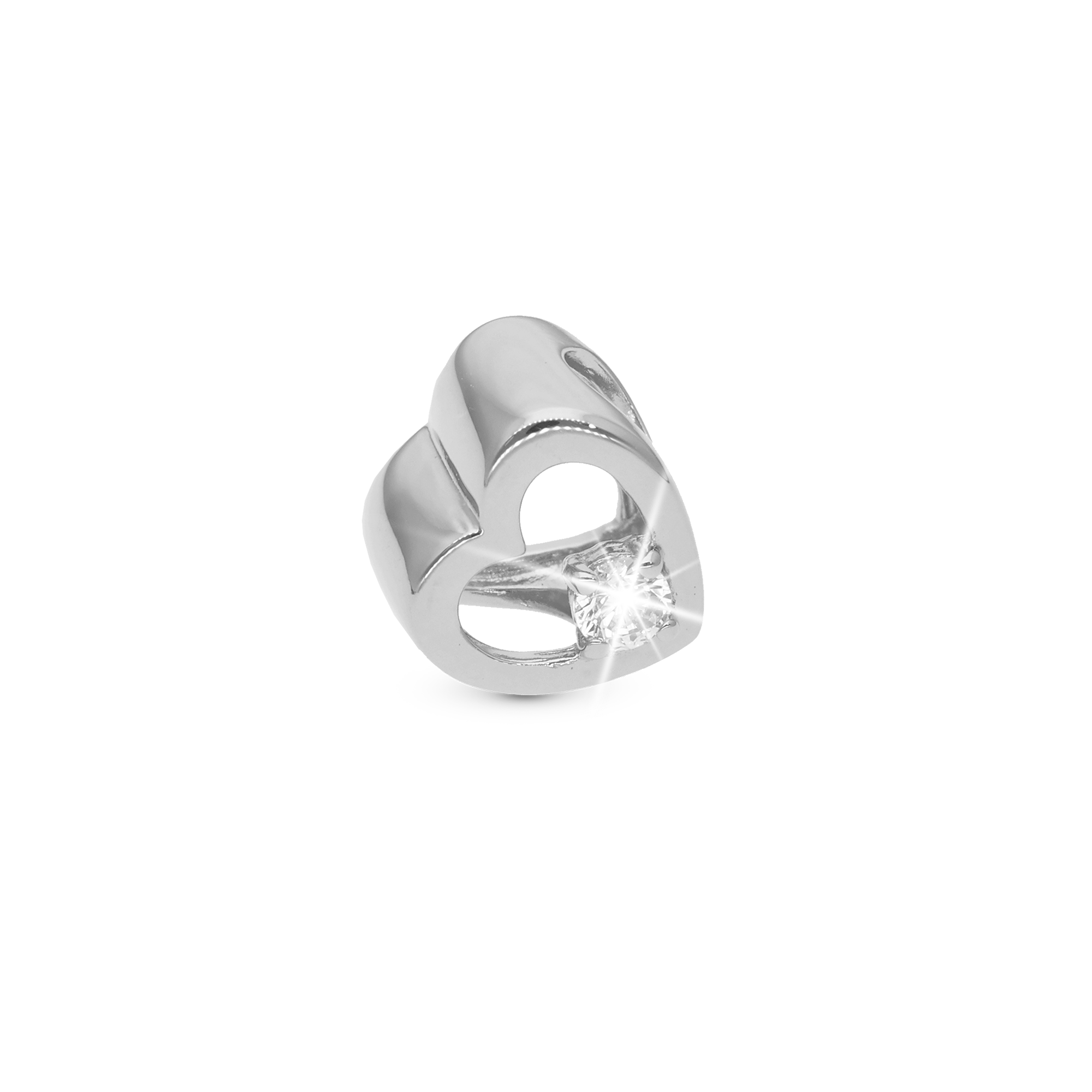 Eternity Love Heart Charm 6 mm for Classic Leather Bracelet – Polished Sterling Silver with 16 White Cubic Zirconia