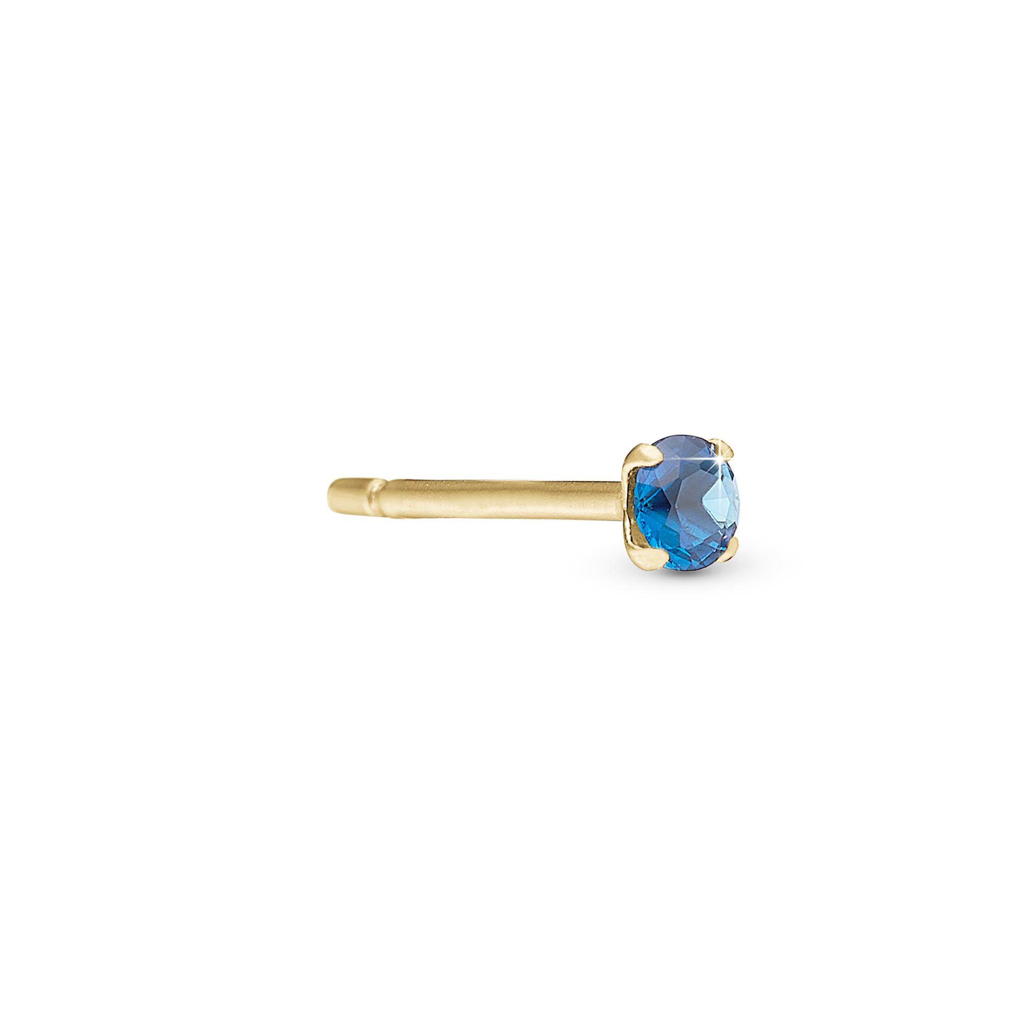 Evening Blue Simple Earring Stud / Single Stud - Polished Gold Plated Sterling Silver with 1 Cubic Zirkonia
