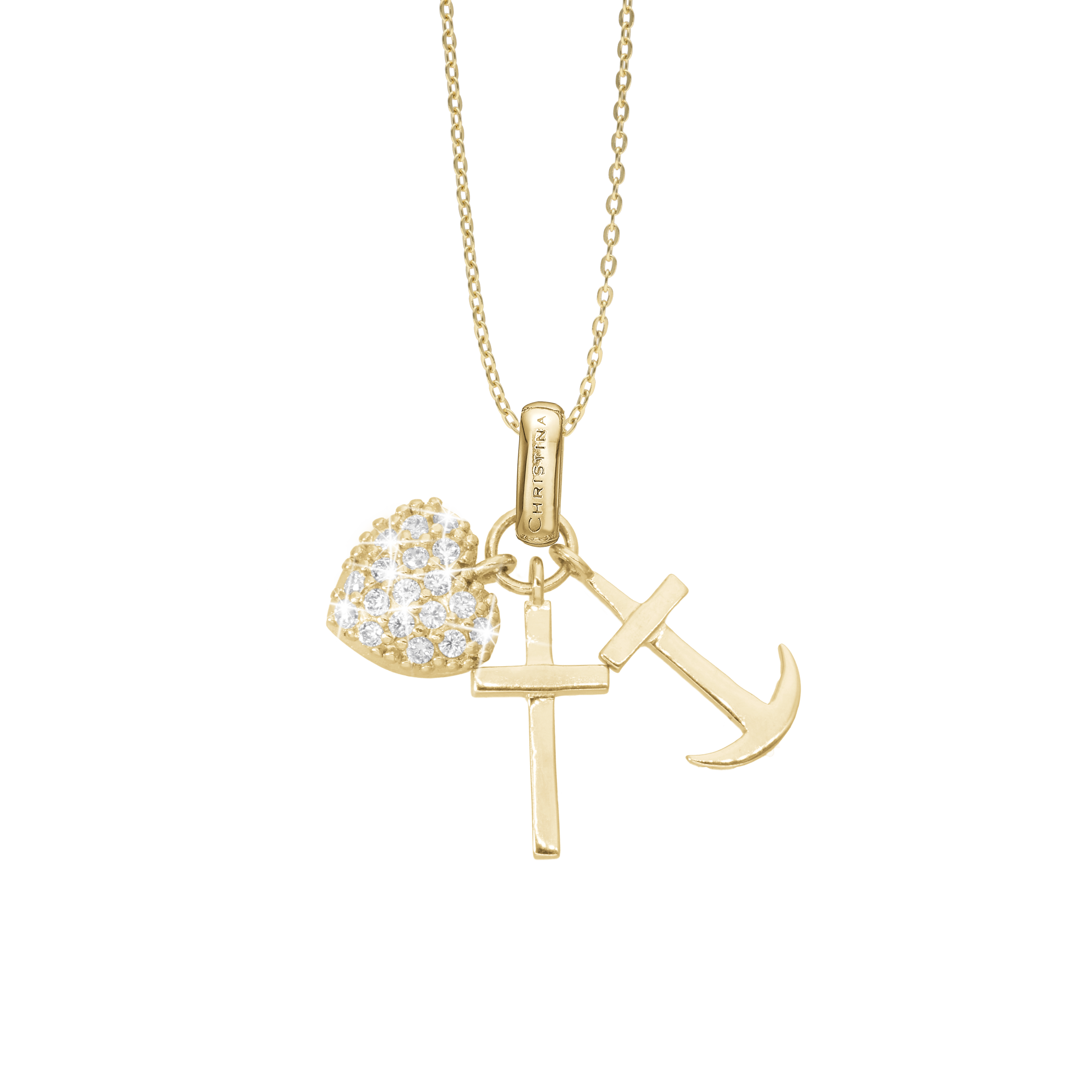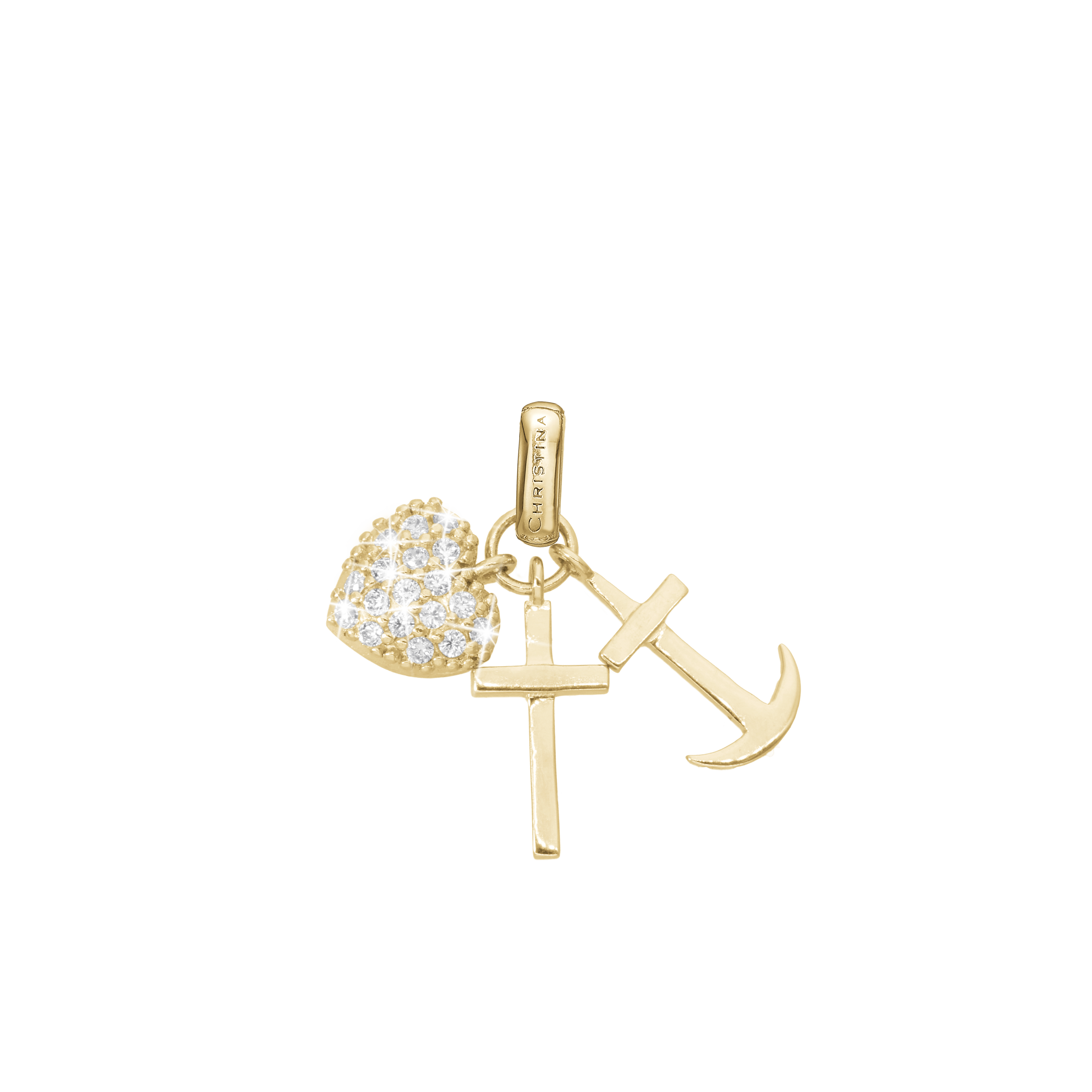 Faith Hope and Love Earring Pendant - Polished Gold Plated Sterling Silver with 32 white Cubic Zirkonia