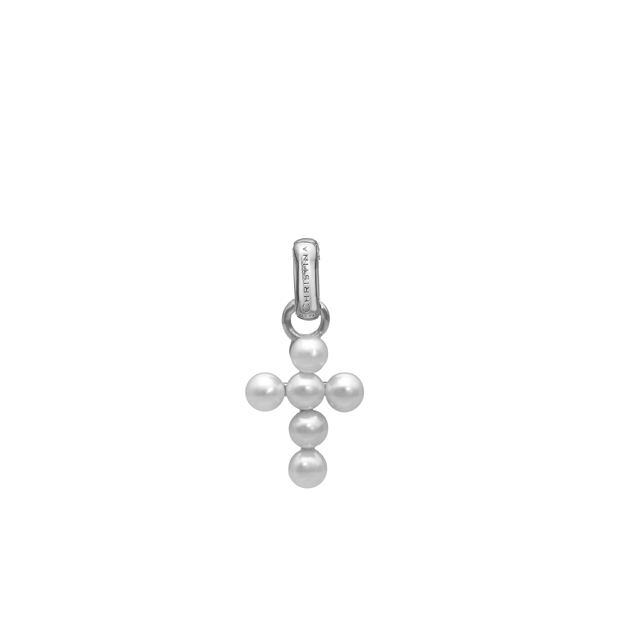 Diminuer la quantité pour Pearl Cross Pendant - Polished Sterling Silver with 6 Freshwater pearls