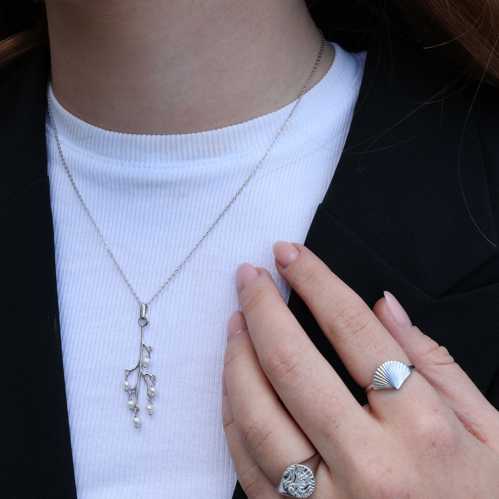 Cherry Tree Pendant - Polished Sterling Silver with 6 Freshwater pearls