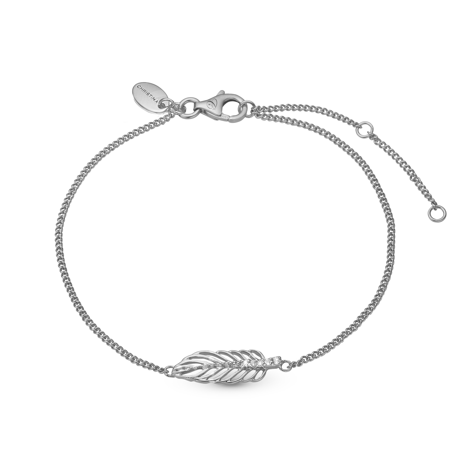 Feather Bracelet - Polished Sterling Silver with 6 white Topas
