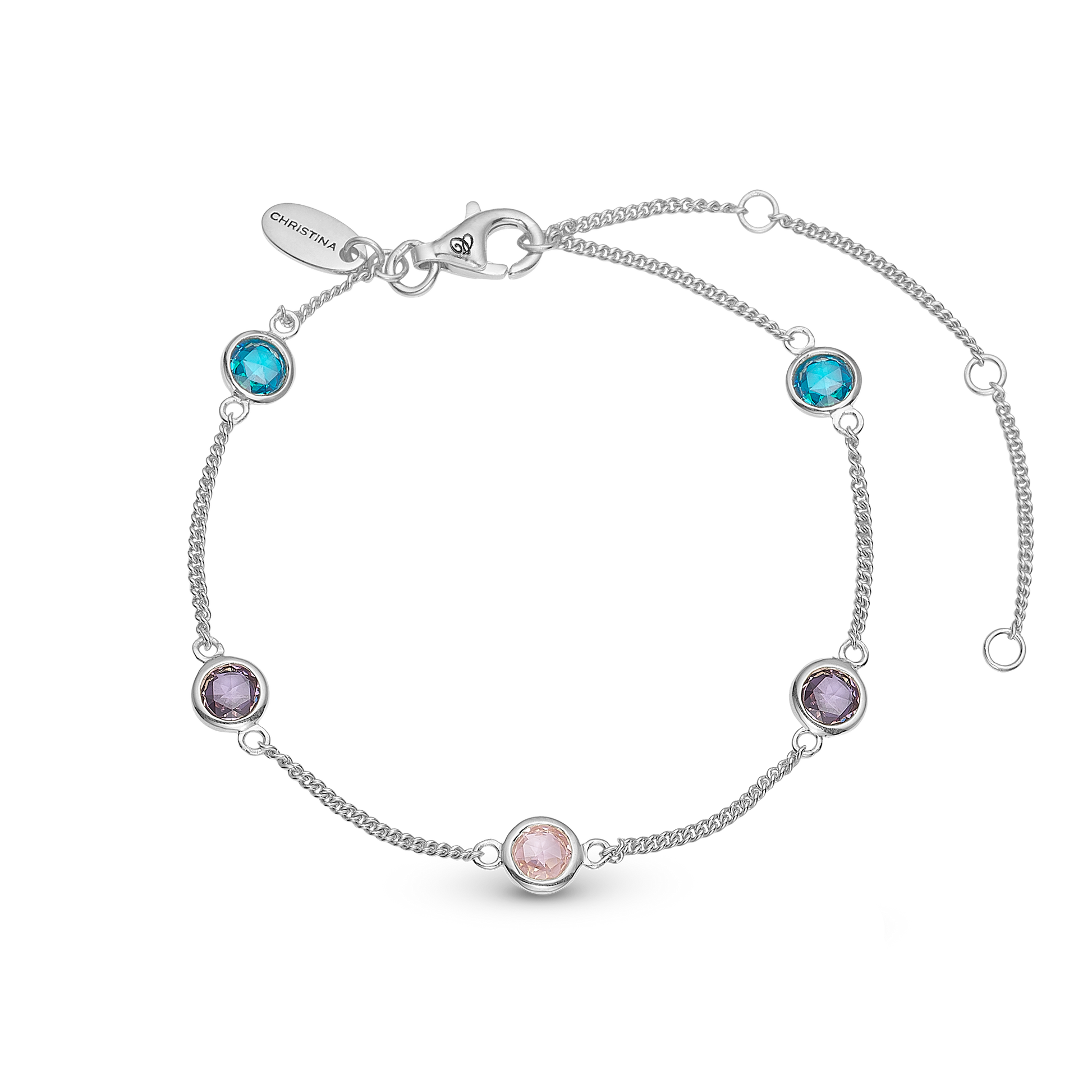 Colourful Champagne Bracelet - Polished Sterling Silver with 5 Multi color Cubic Zirkonia