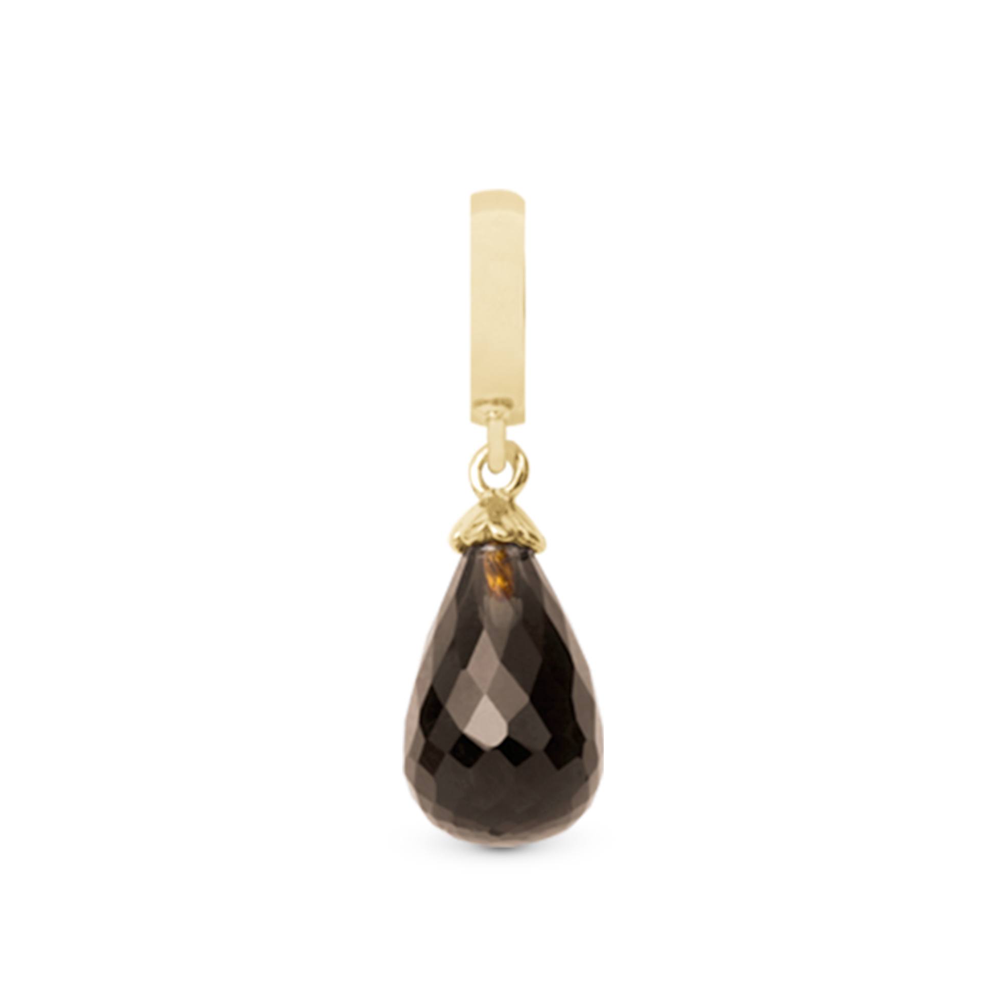 Smokey Quartz Drop Earring Charm 6 mm for Bracelet - Polished Gold Plated Sterling Silver with 1 Krystalkvarts