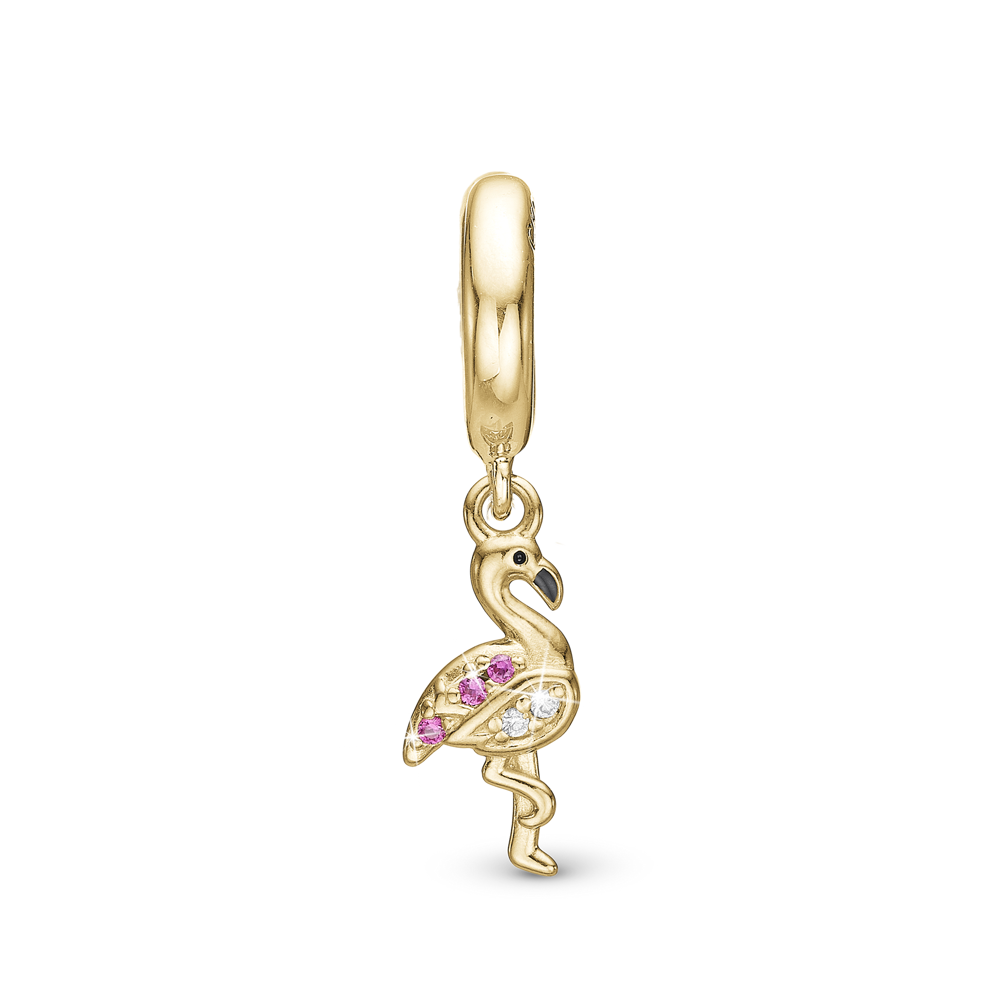 Flamingo Drop Earring Charm 6 mm for Bracelet - Gold Plated Sterling Silver with 5 white Cubic Zirkonia