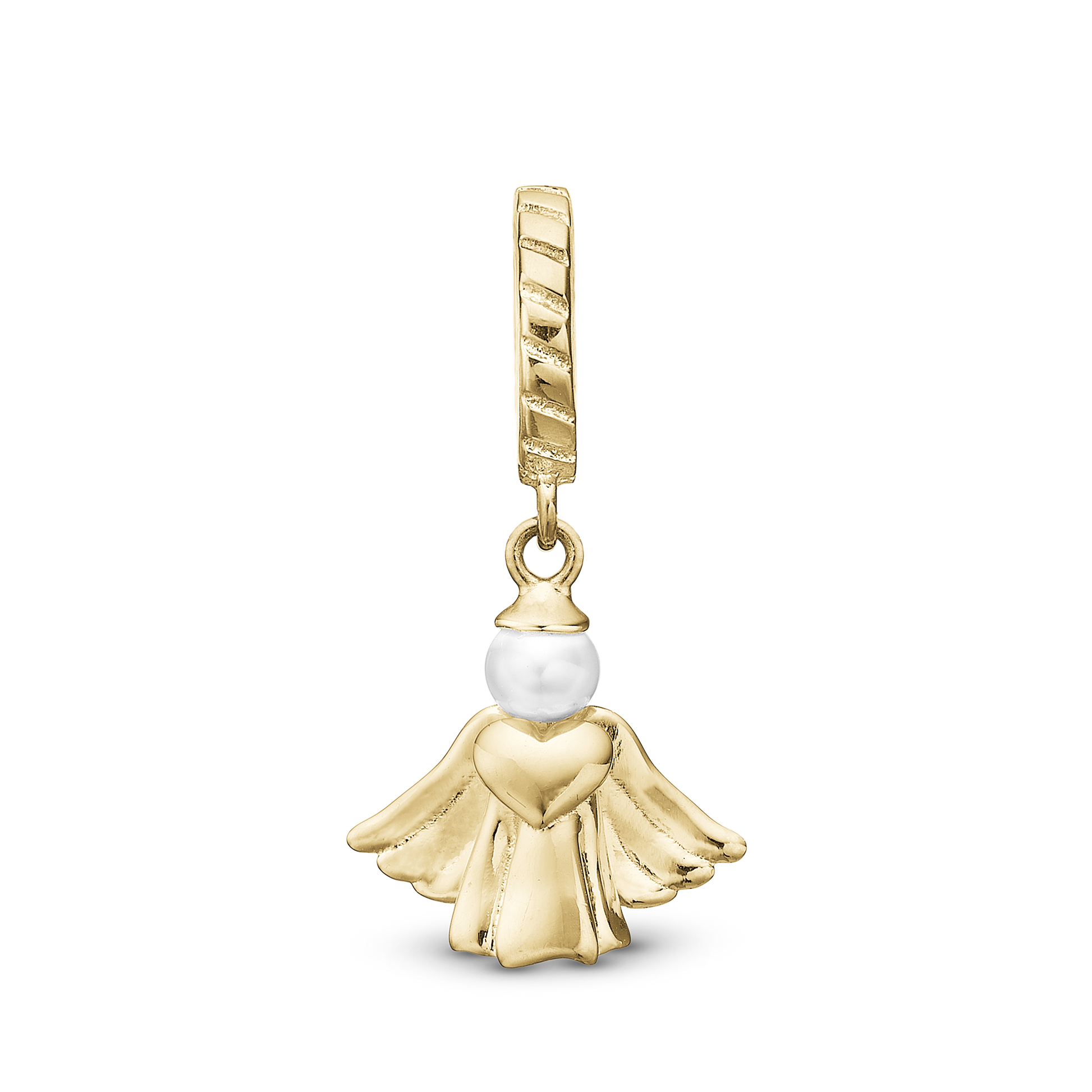 Heavenly Angel Drop Earring Charm 6 mm for Bracelet - Polished Gold Plated Sterling Silver with 1 Ferskvandsperle