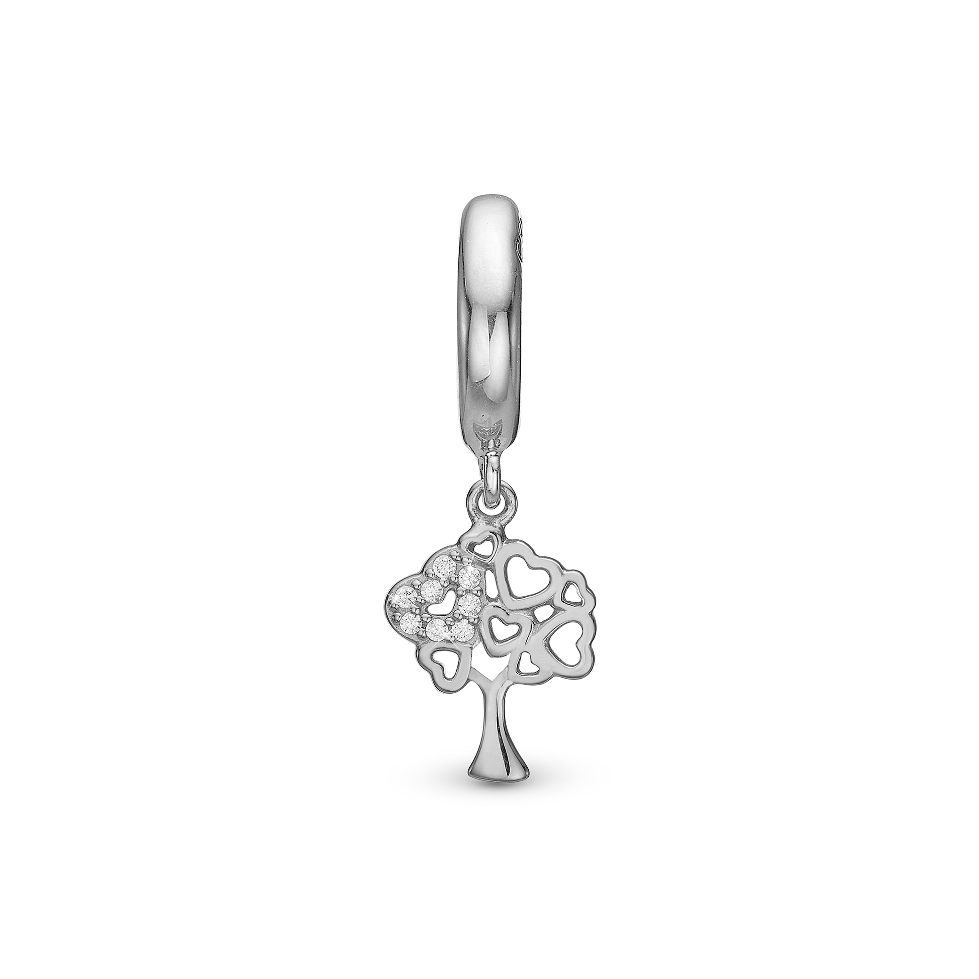 Tree of Hearts Drop Earring Charm 6 mm for Bracelet - Polished Sterling Silver with 8 white Cubic Zirkonia