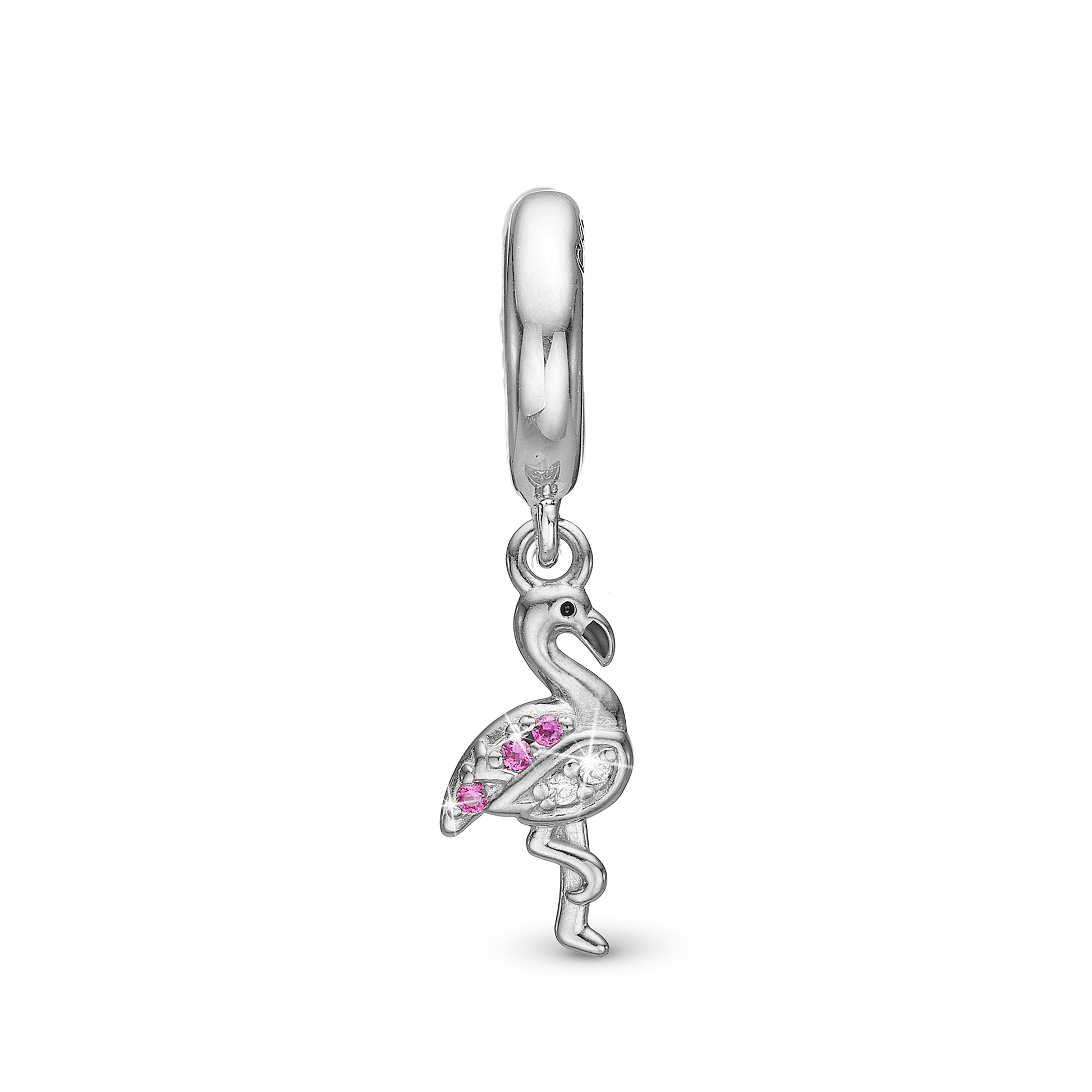 Flamingo Drop Earring Charm 6 mm for Bracelet - Sterling Silver with 5 white Cubic Zirkonia