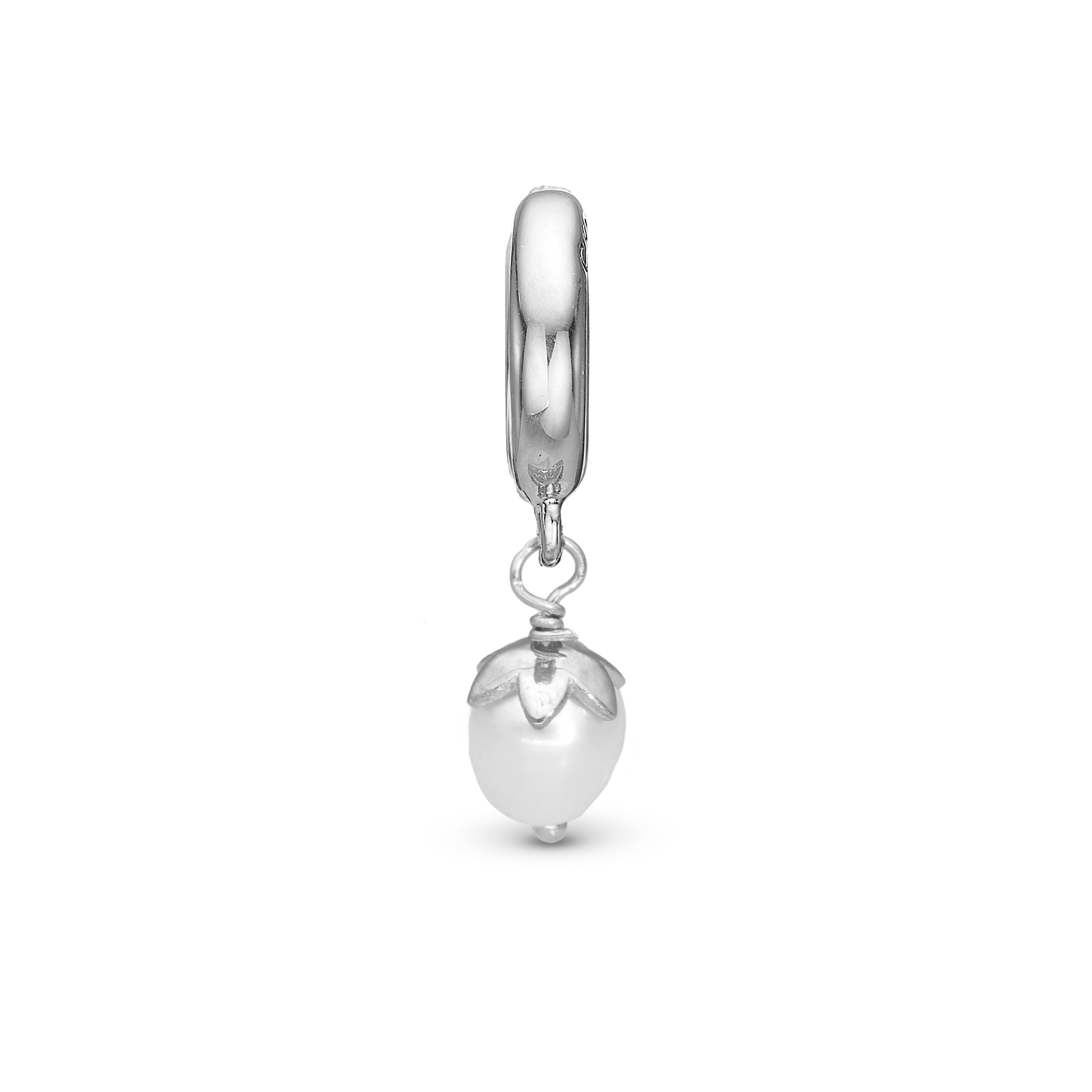 Sparkling Pearl Drop Earring Charm 6 mm for Bracelet - Glitrende Sterling Silver with 1 Ferskvandsperle