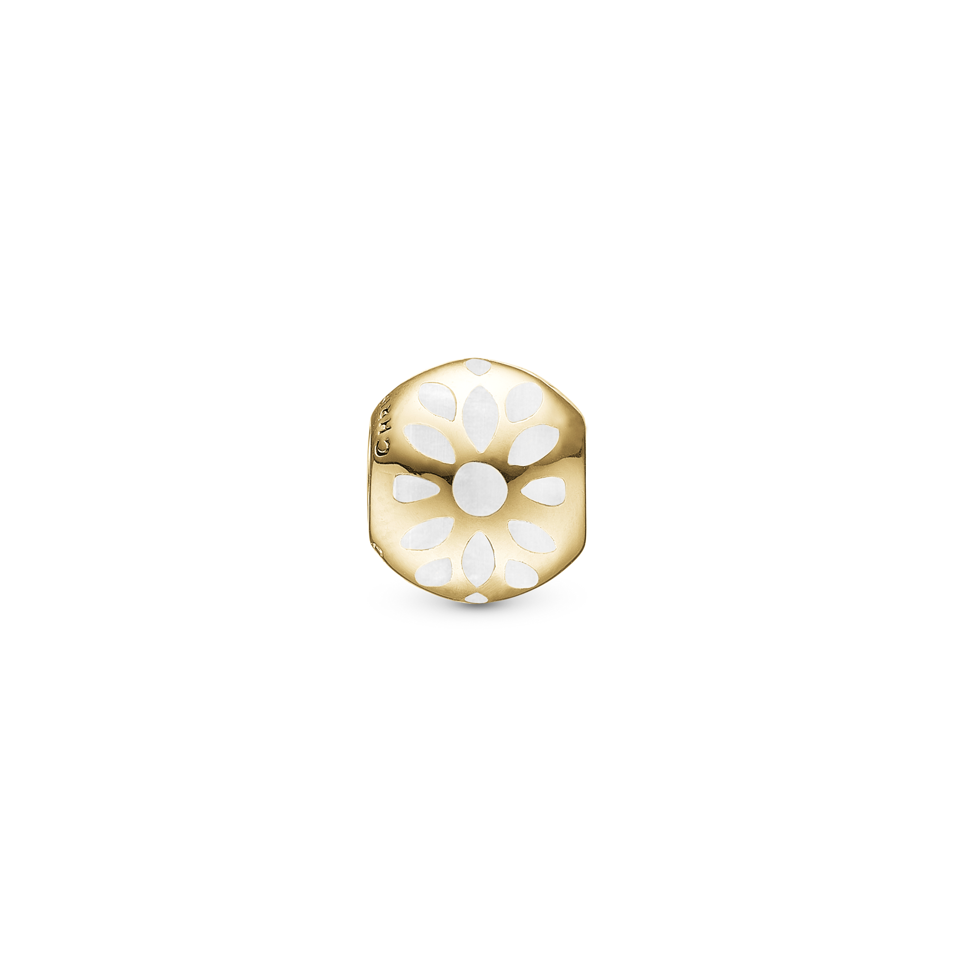 White Bloom, mother of pearl - Charm 4 mm for Bracelet - Gold Plated Sterling Silver