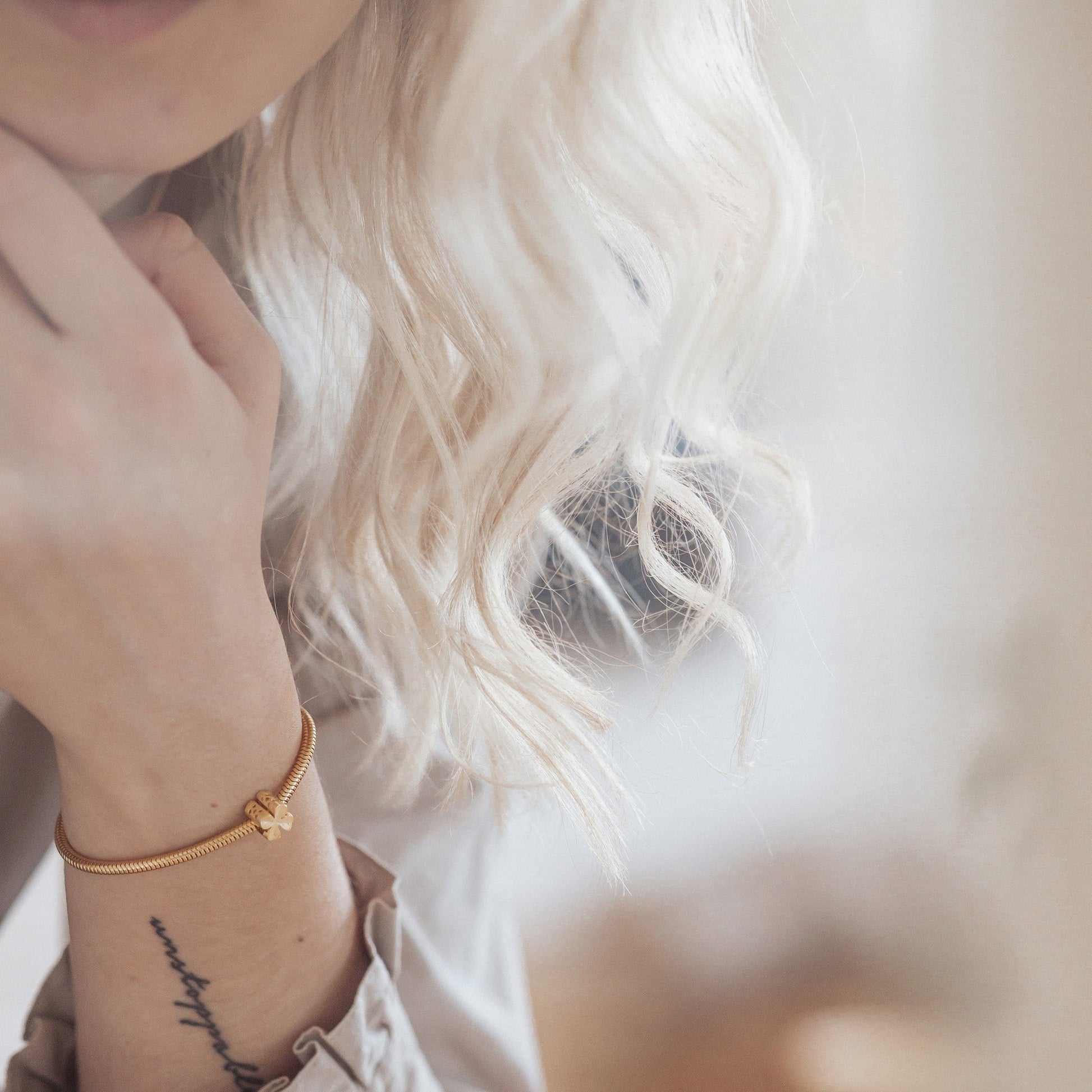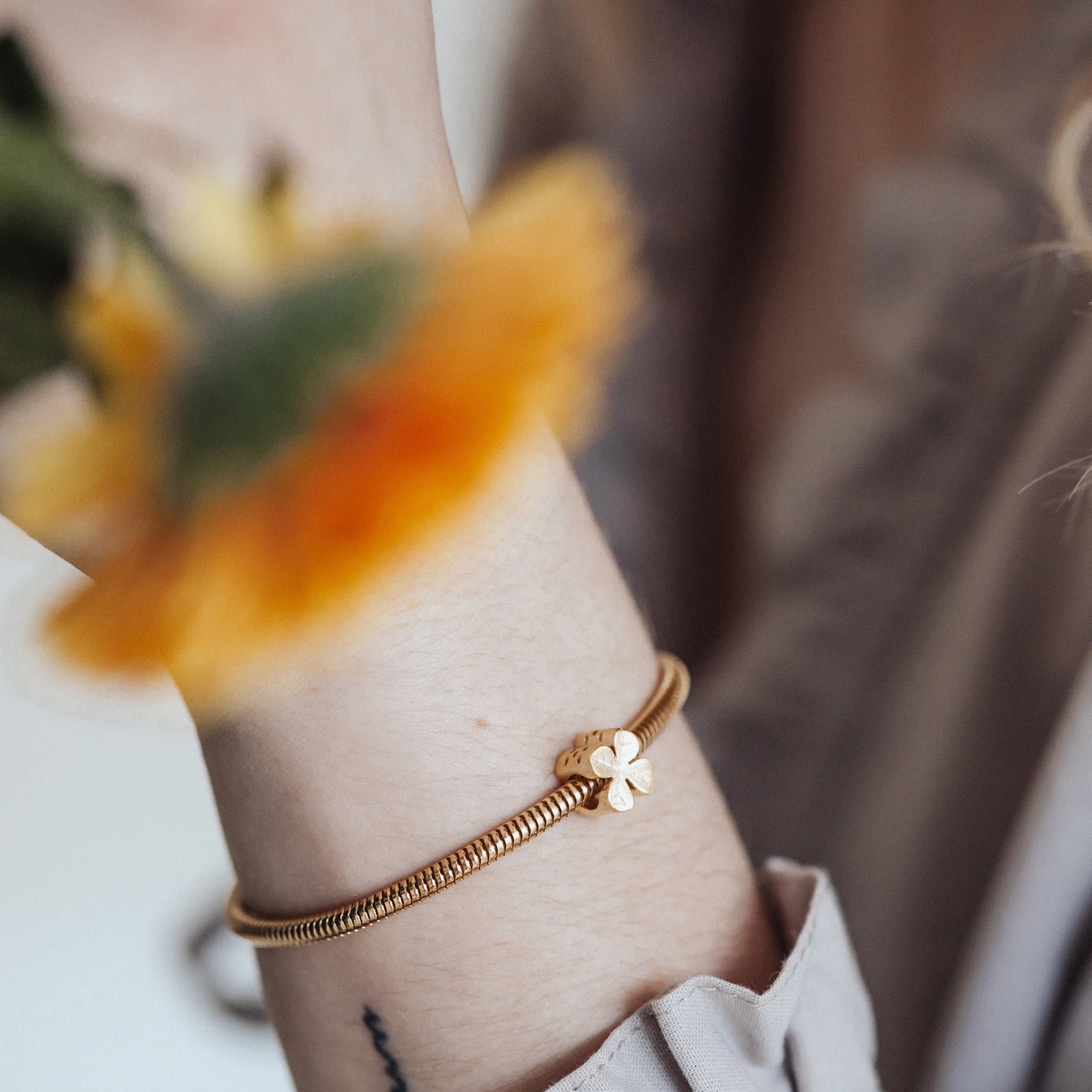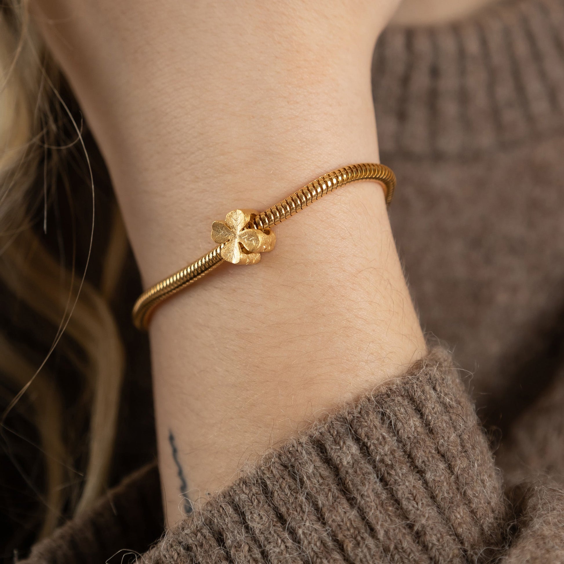 Four Leaf Clover - Charm 4 mm with Bracelet - Brushed Golded Sterling Silvert
