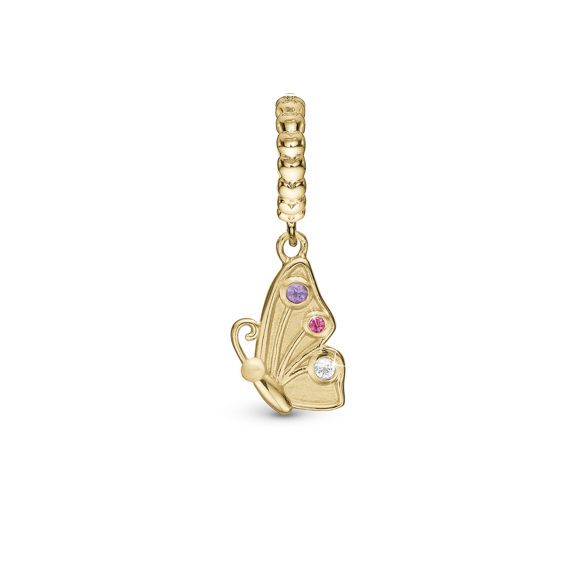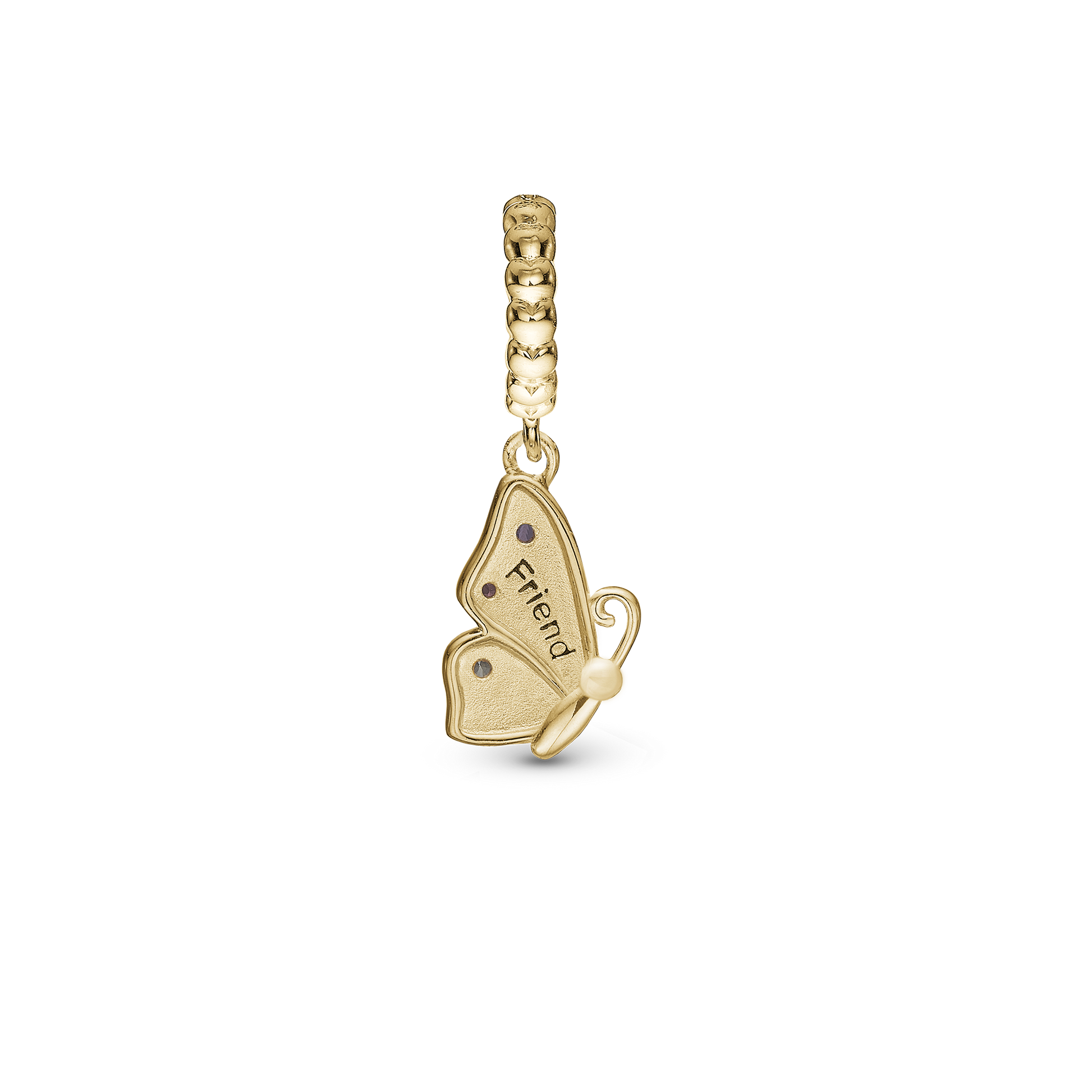 Butterfly Friend - Dangle Charm 4 mm with Bracelet - Polished Gold-Plated Sterling Silver with 3 Cubic Zirconia