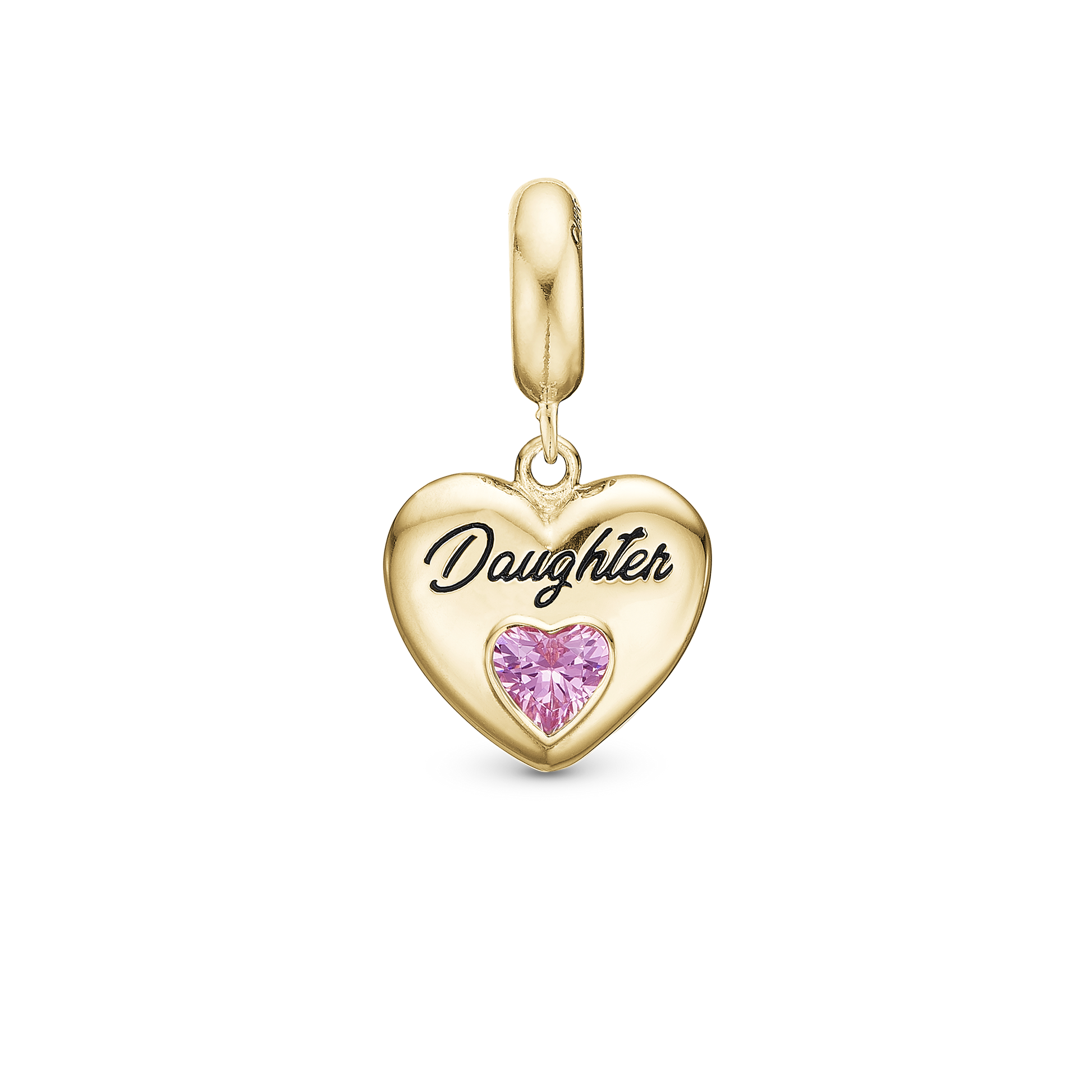 Daughter - Dangle Charm 4 mm with Bracelet - Polished Gold-Plated Sterling Silver with 3 Turmalin