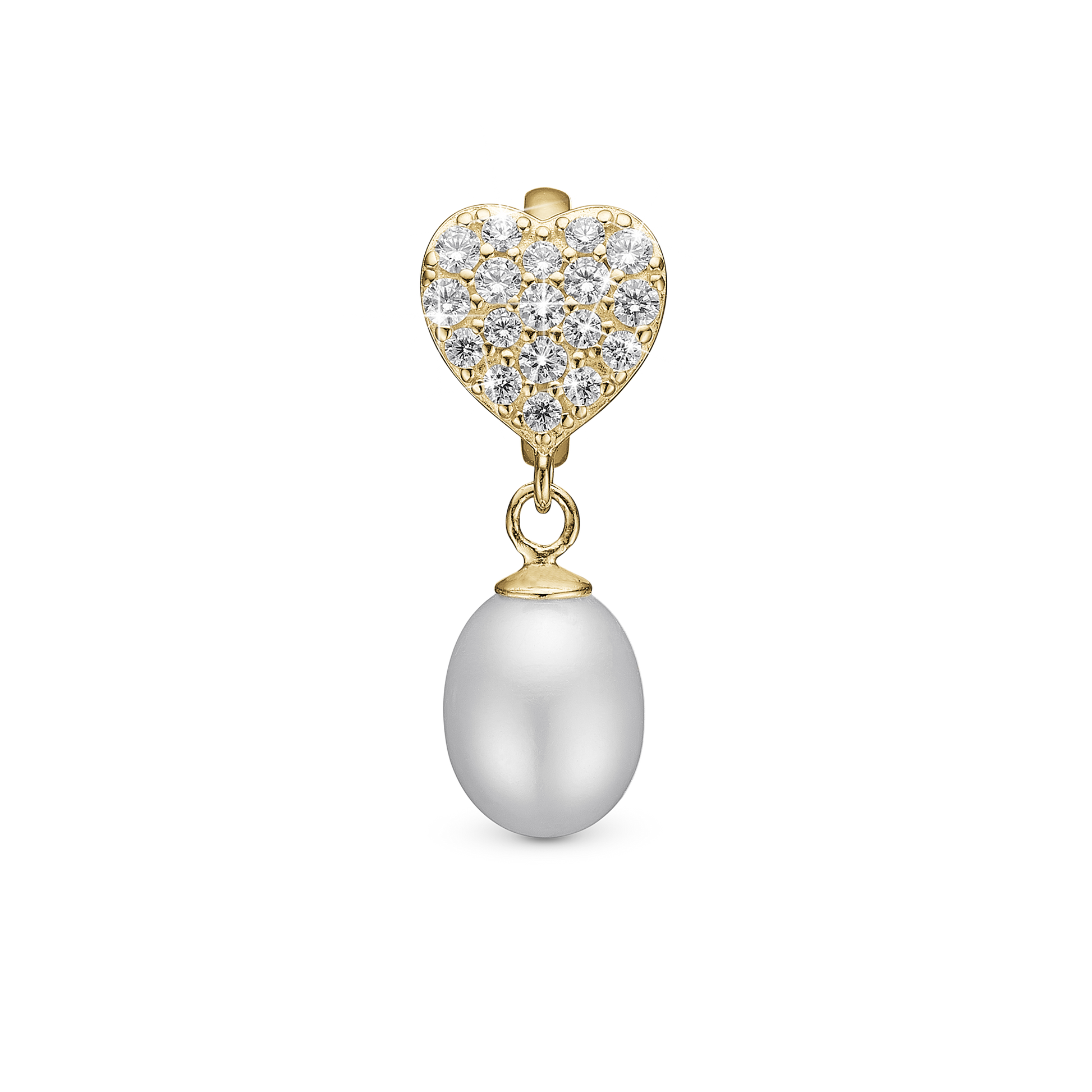 Sparkling Heart - Drop Earring Charm 4 mm for Bracelet - Gold Plated Sterling Silver with 19 Ferskvandsperler