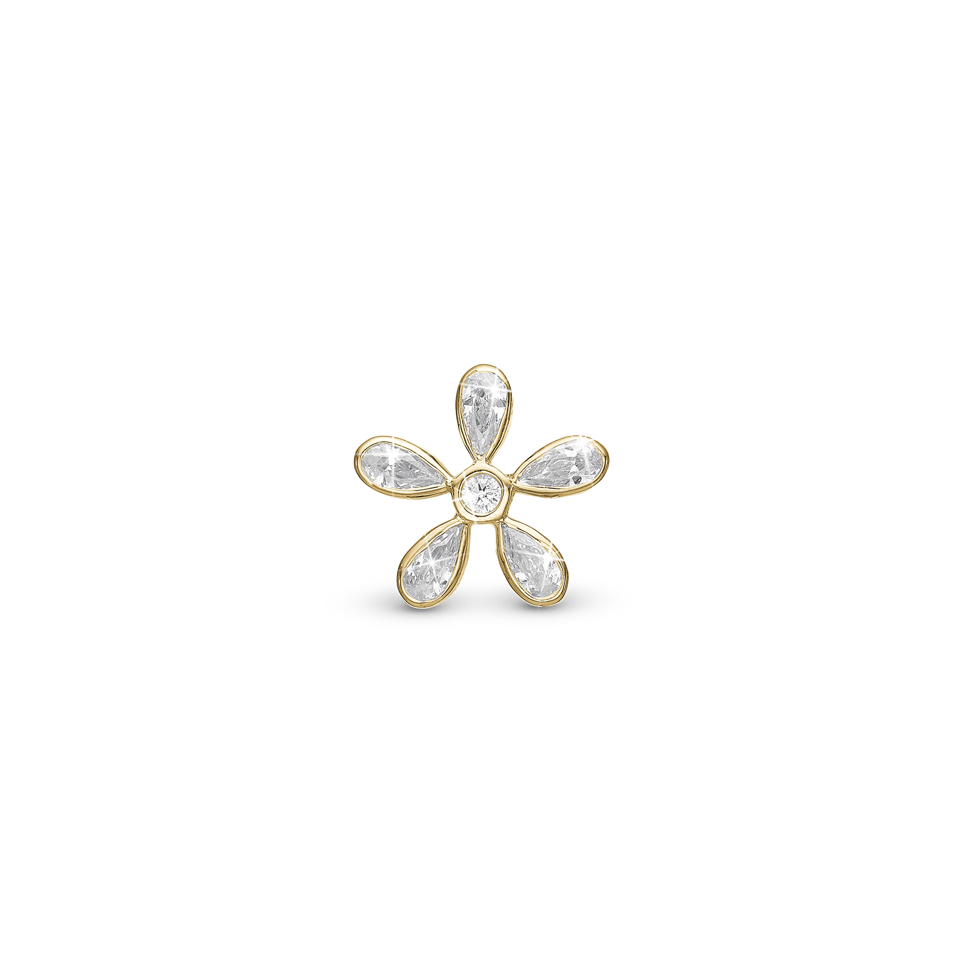 Magical White Flower - Charm 4 mm for Bracelet - Gold Plated Sterling Silver with 6 Cubic Zirkonia
