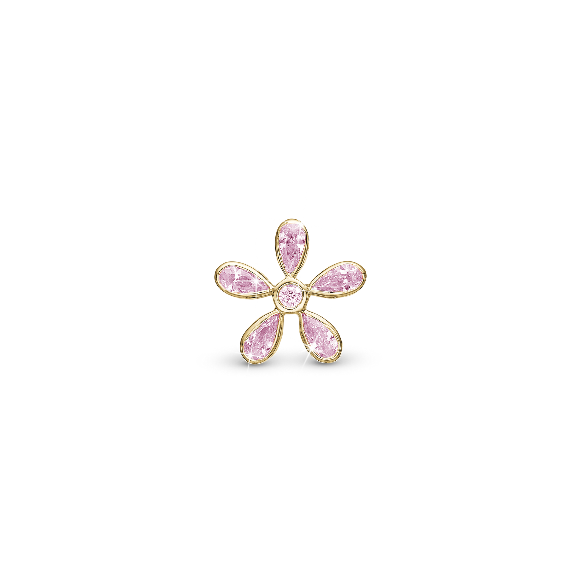 Magical Pink Flower - Charm 4 mm with Bracelet - Gold-Plated Sterling Silver with 6 Cubic Zirconia
