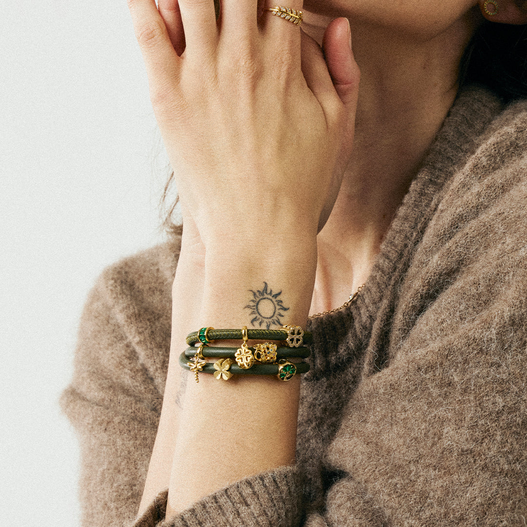 Lucky - Dangle Charm 4 mm with Bracelet - Polished/Matte Gold-Plated Sterling Silver