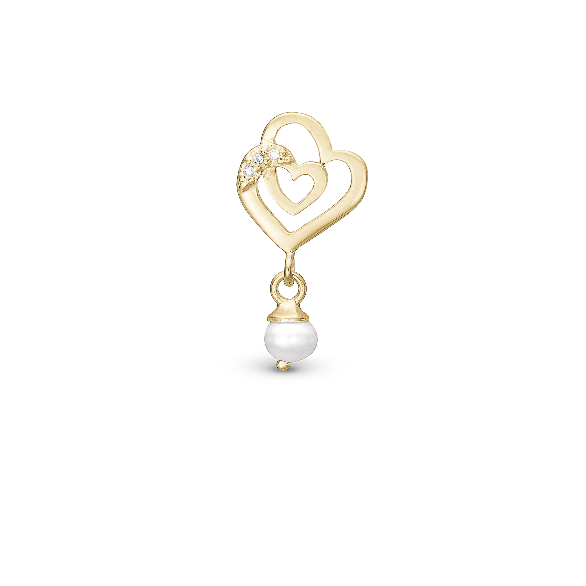 Two Hearts - Drop Earring Charm 4 mm for Bracelet - Polished Gold Plated Sterling Silver with 3 Cubic Zirkonia
