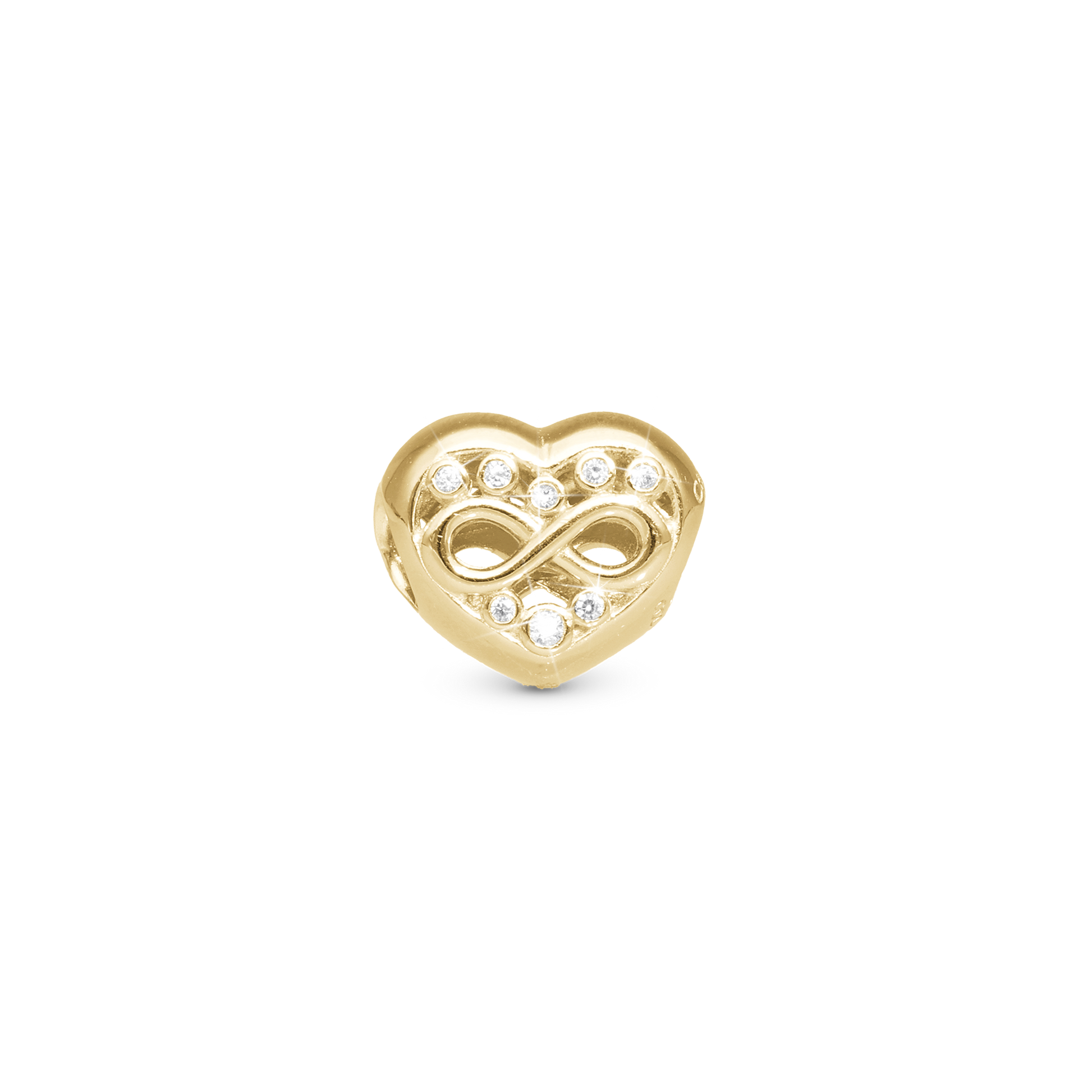 Eternity Love heart - Charm 4 mm for Bracelet - Polished Gold Plated Sterling Silver