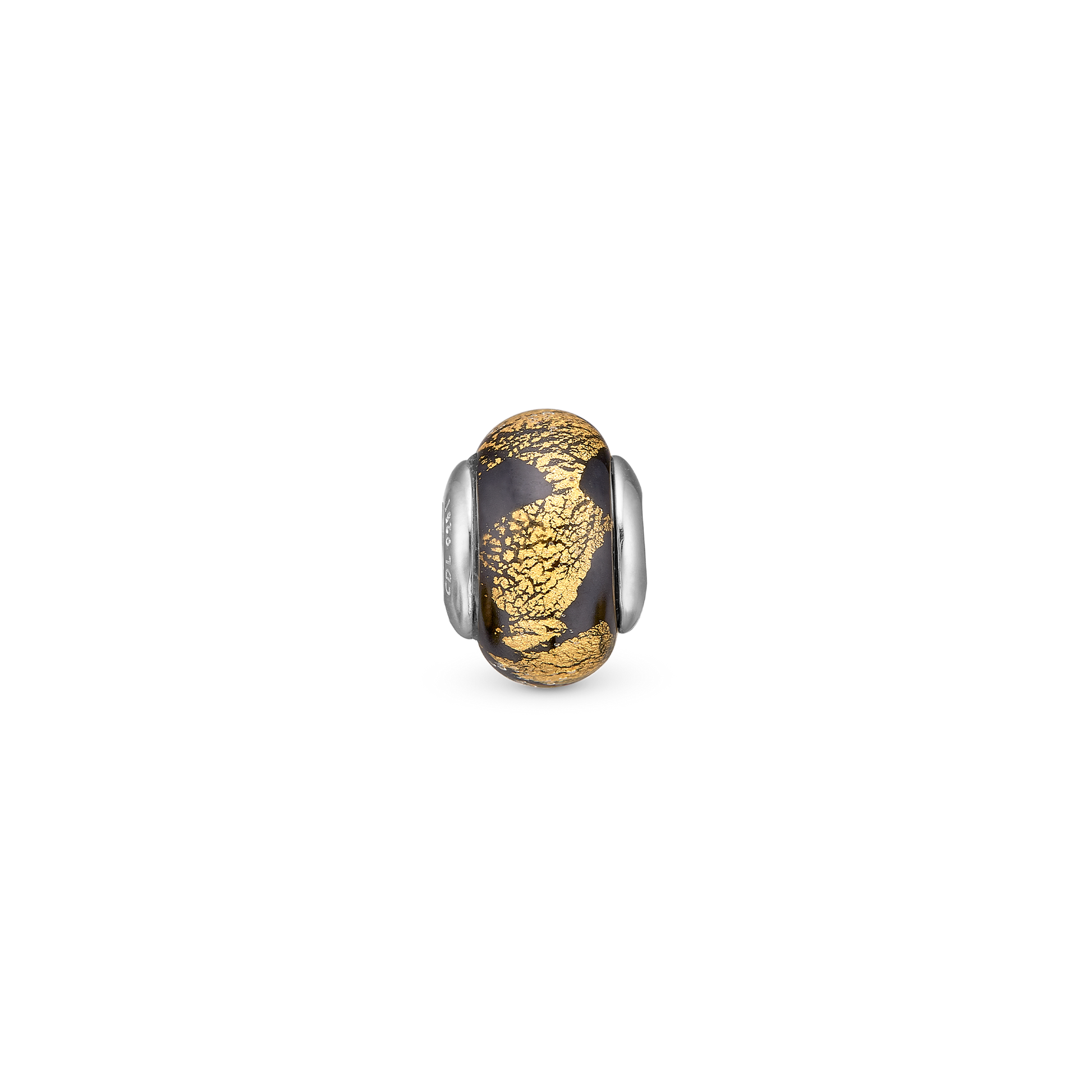 Golden Black Globe - Charm 4 mm for Bracelet - Sterling Silver with 1 Glas