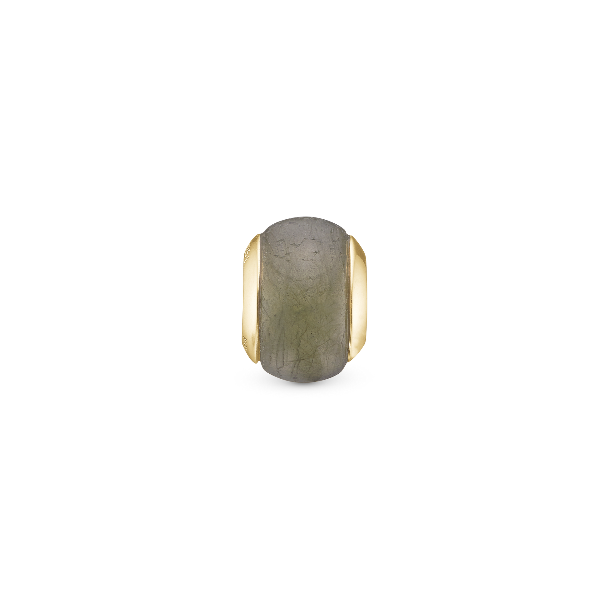 Green Moss Magic Charm 6 mm for Classic Leather Bracelet - Polished Gold Plated Sterling Silver with 1 Agat