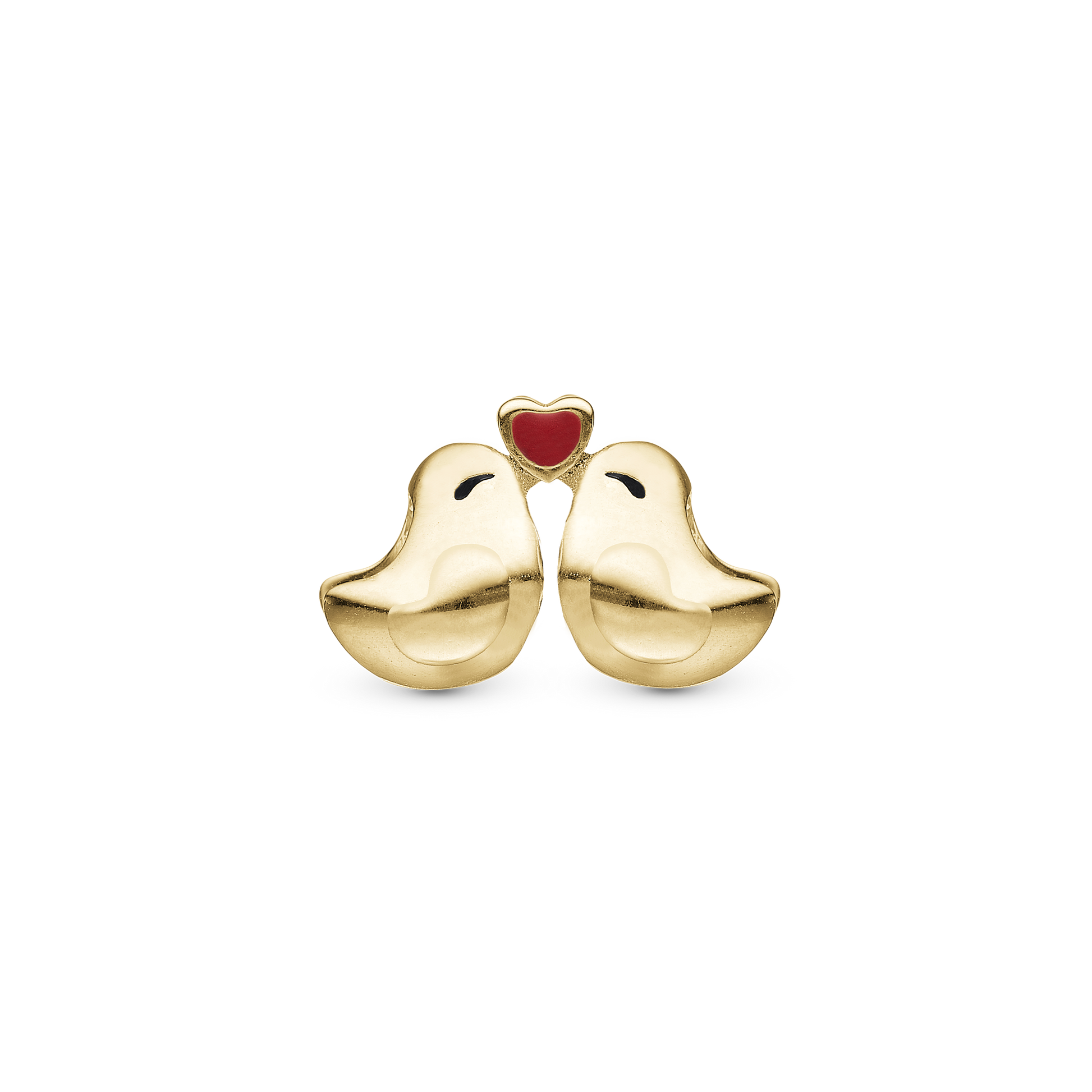 Love Birds Charm 6 mm for Classic Leather Bracelet - Polished Gold Plated Sterling Silver