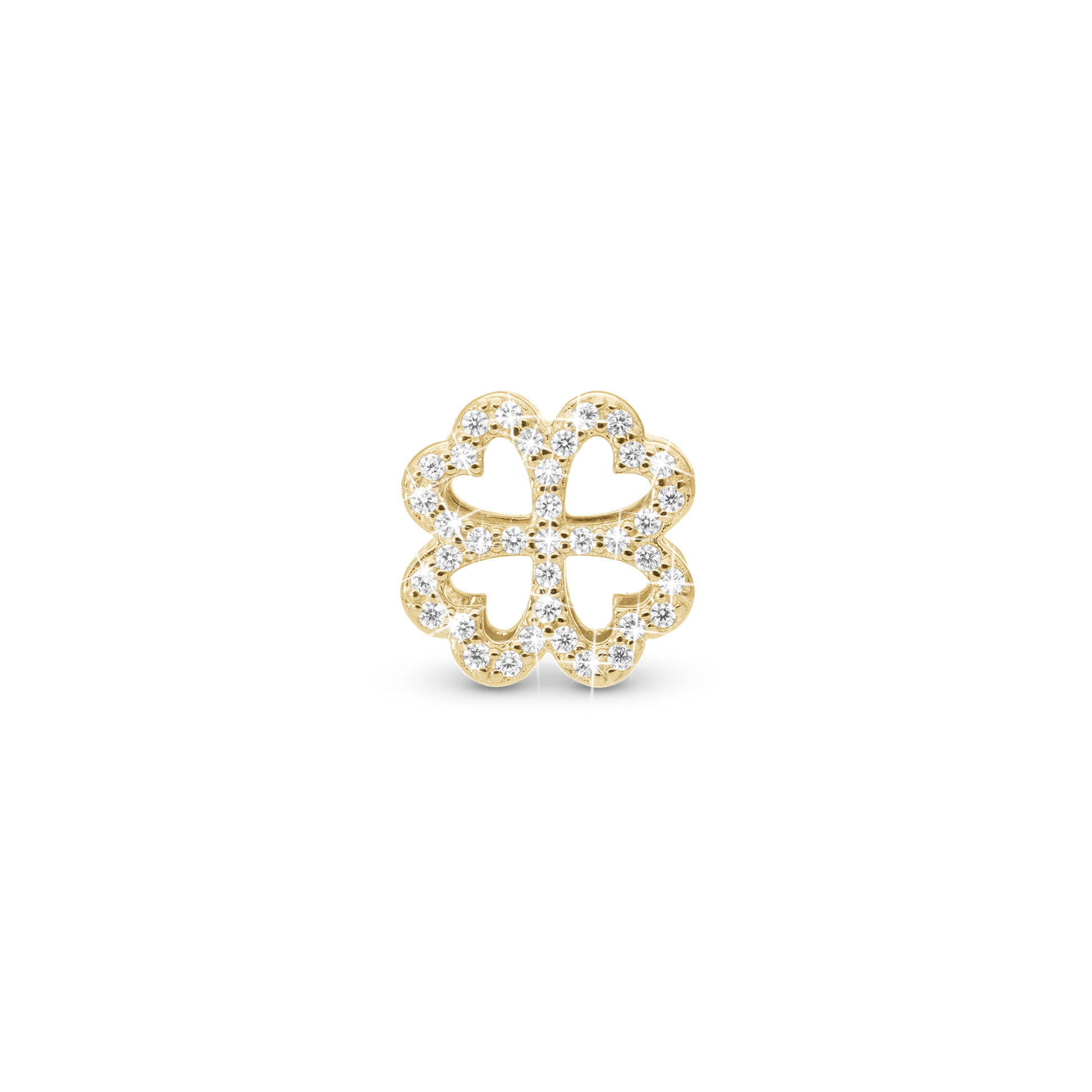 Shimmery Clover Charm 6 mm for Classic Leather Bracelet - Polished Gold Plated Sterling Silver with 1 Cubic Zirkonia