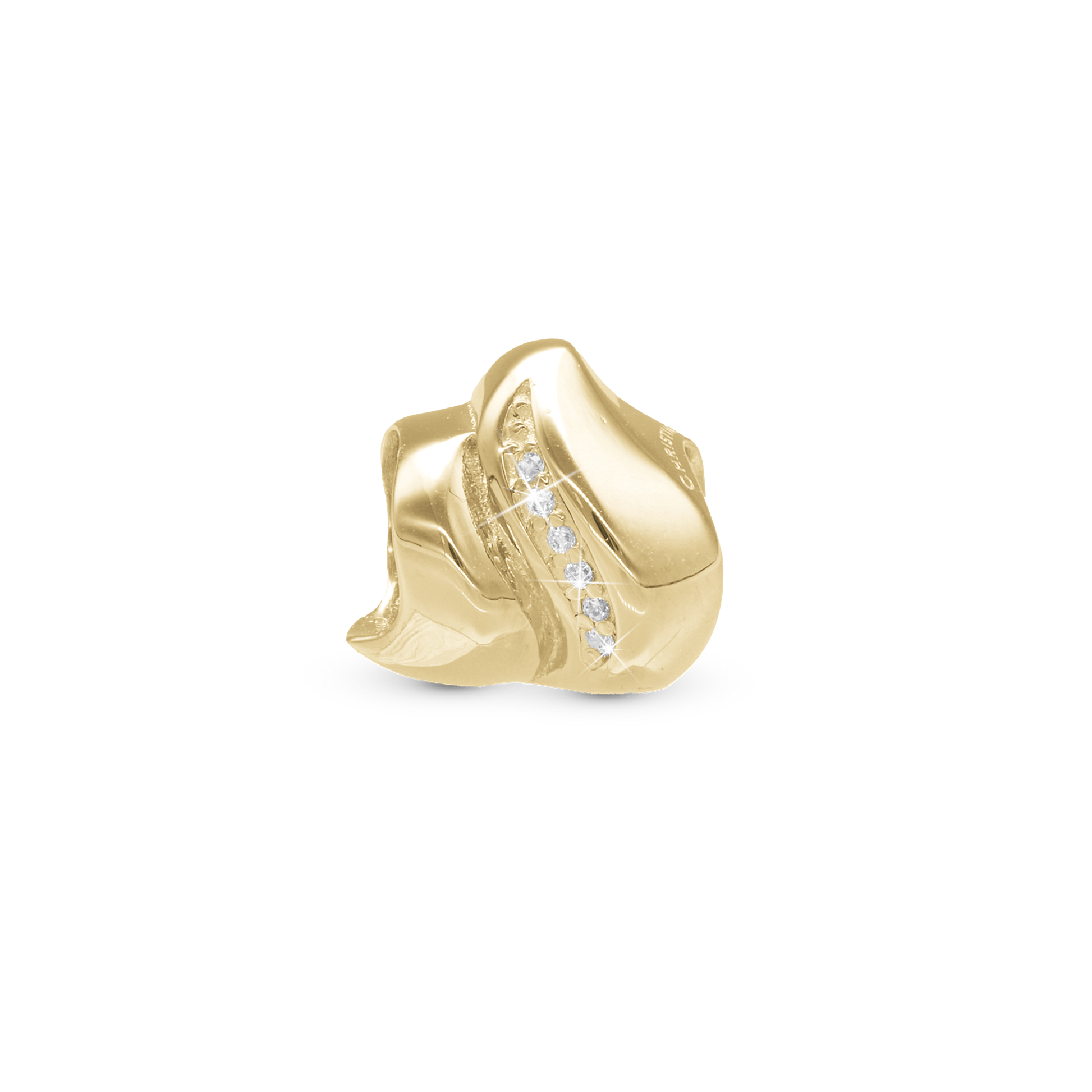 Majestic wave Charm 6 mm for Classic Leather Bracelet - Polished Gold Plated Sterling Silver with 6 white Cubic Zirkonia