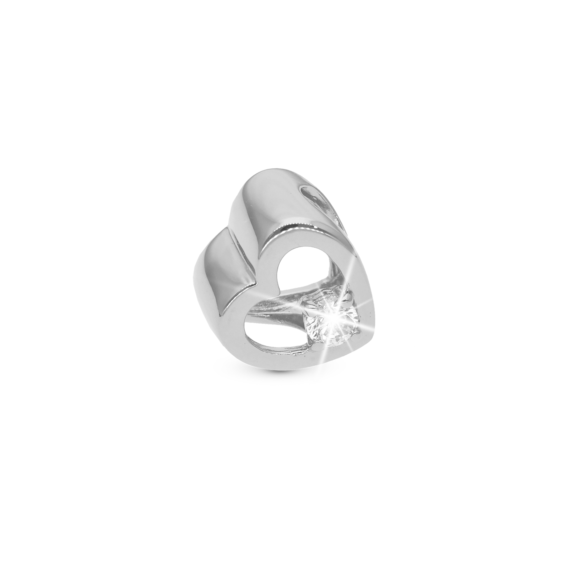 Eternity Love Heart Charm 6 mm for Classic Leather Bracelet – Polished Sterling Silver with 16 White Cubic Zirconia