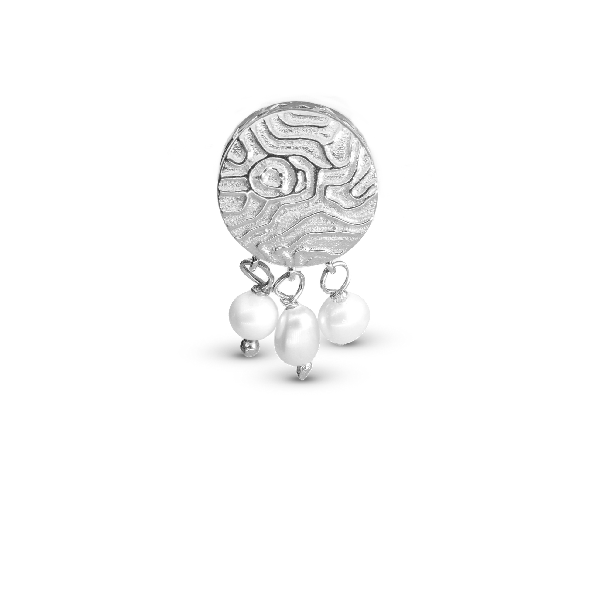 Dazzling imprint Charm 6 mm for Classic Leather Bracelet - Polished Sterling Silver with 3 white Ferskvandsperler