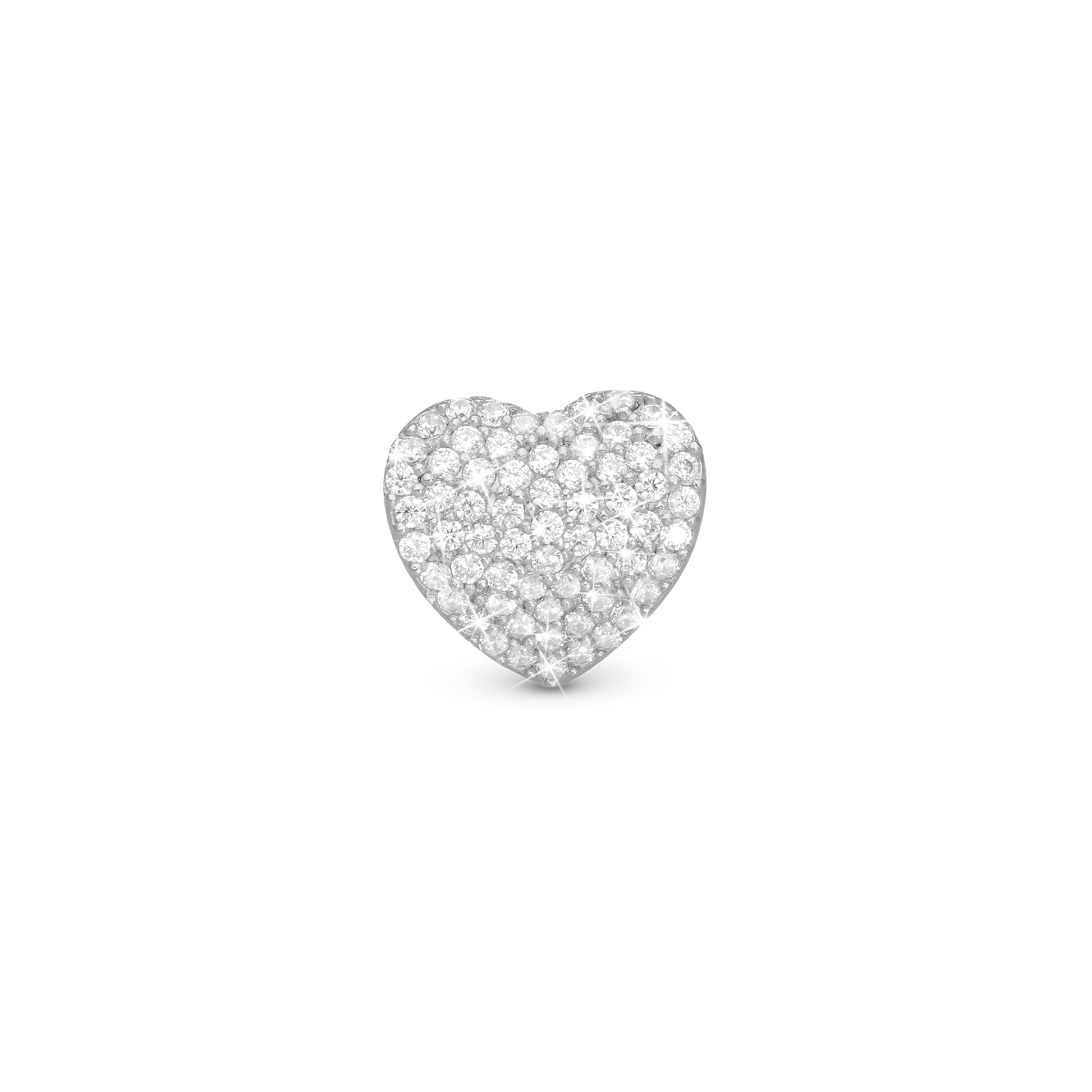 Sparkling Love Charm 6 mm for Classic Leather Bracelet - Polished Sterling Silver with Cubic Zirkonia