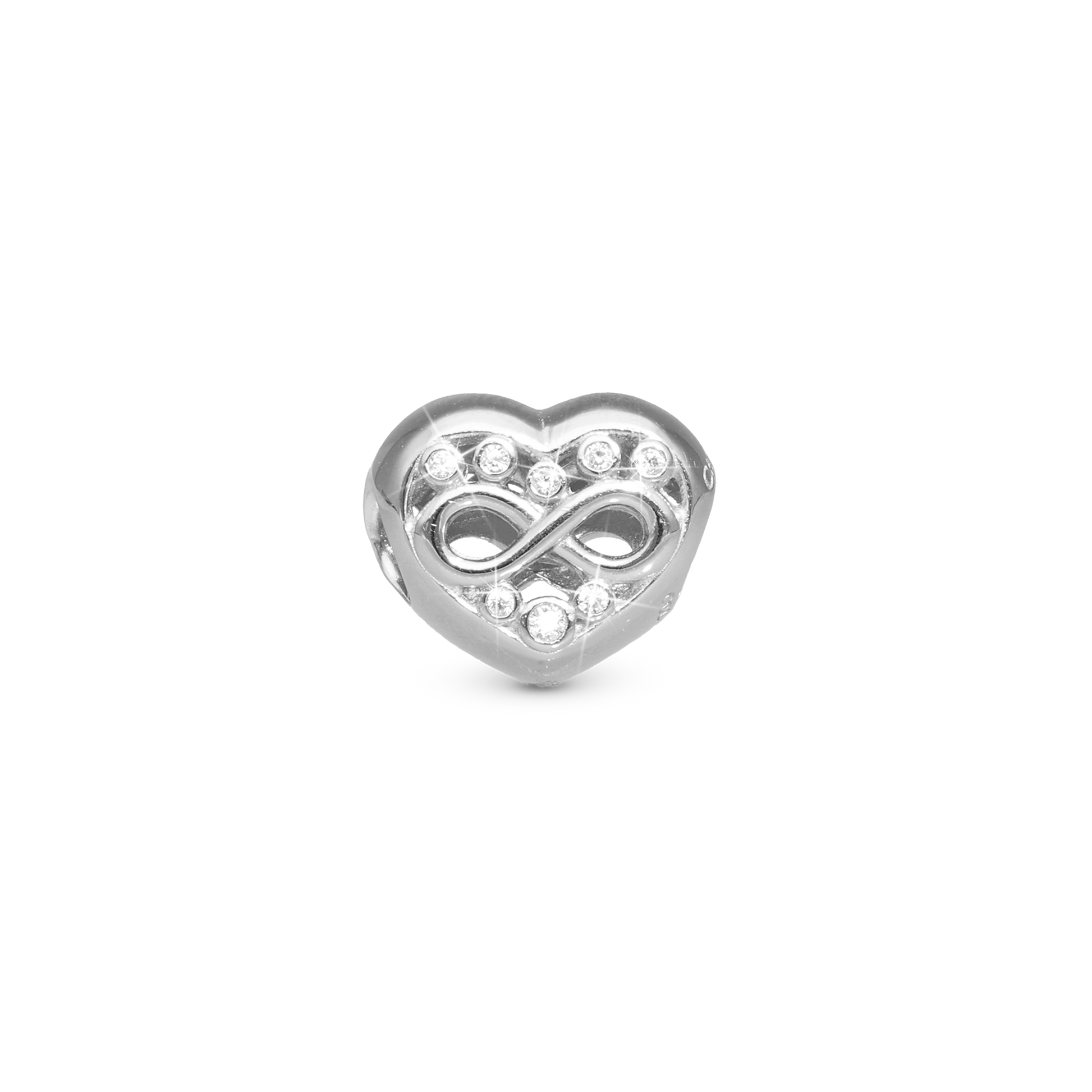 Eternity Love heart Charm 6 mm for Classic Leather Bracelet - Polished Sterling Silver with 16 white Cubic Zirkonia