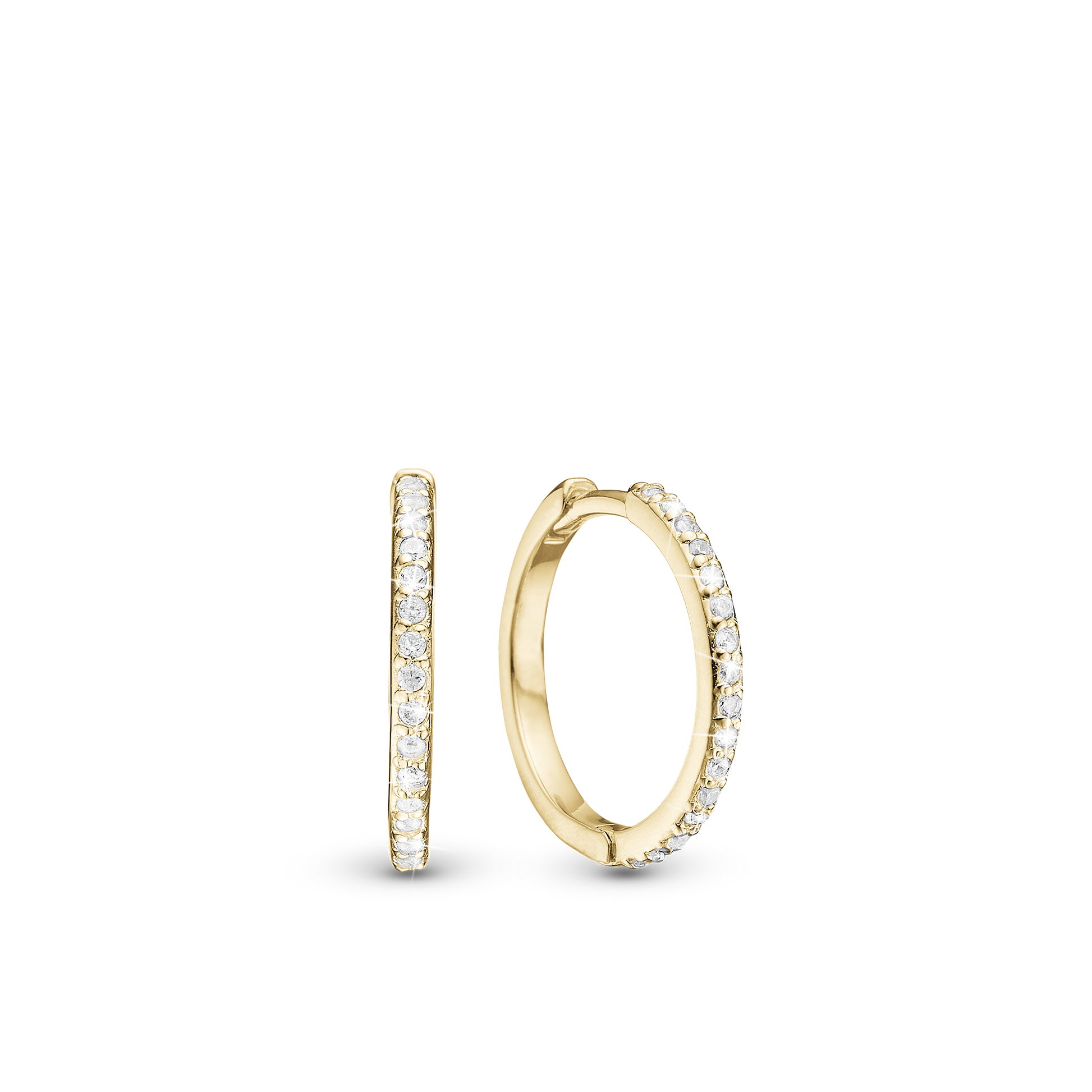 Twinkle Hoops - Polished Gold Plated Sterling Silver with 24 white Cubic Zirkonia