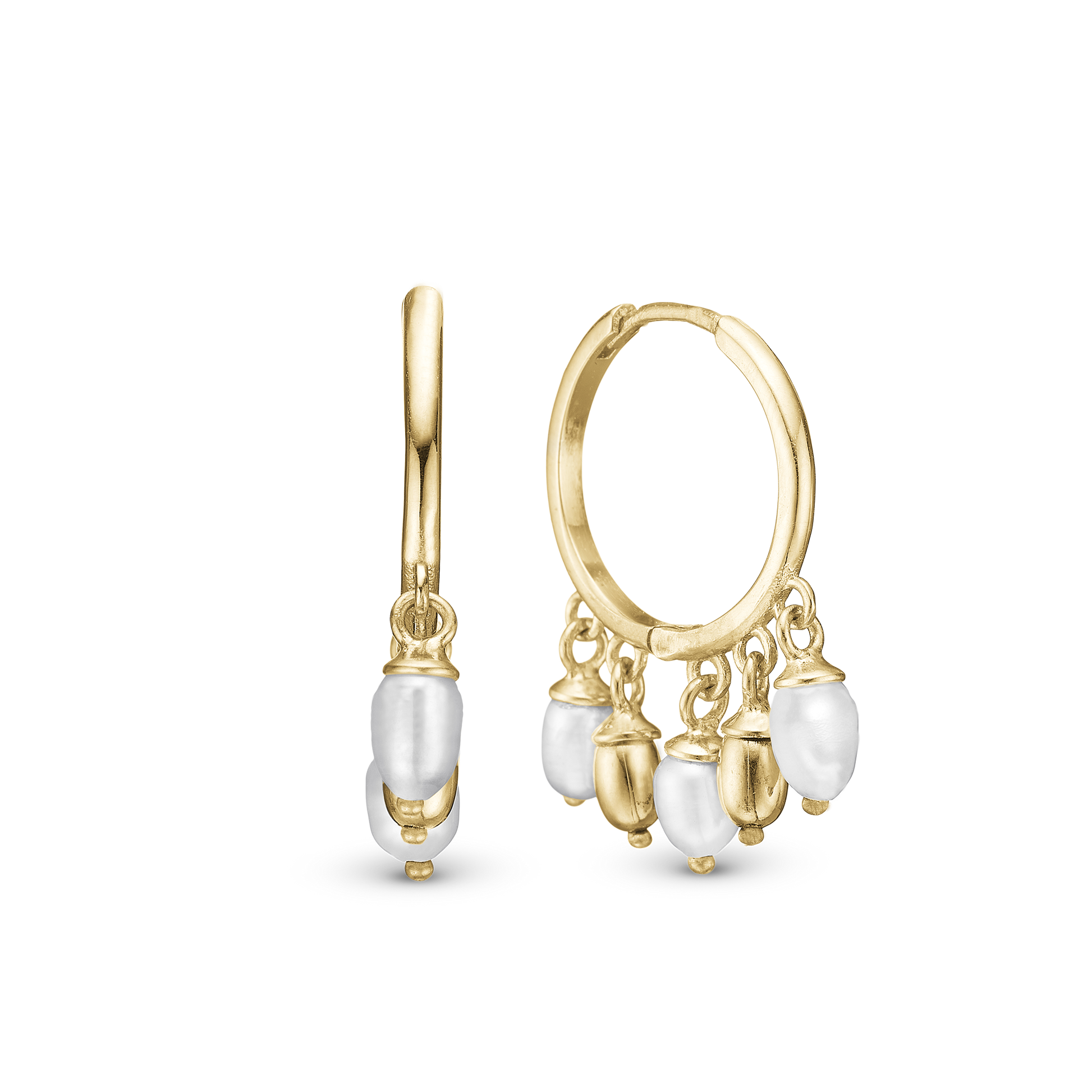 Magic Pearls Hoops - Gold Plated Sterling Silver with 6 white Ferskvandsperler