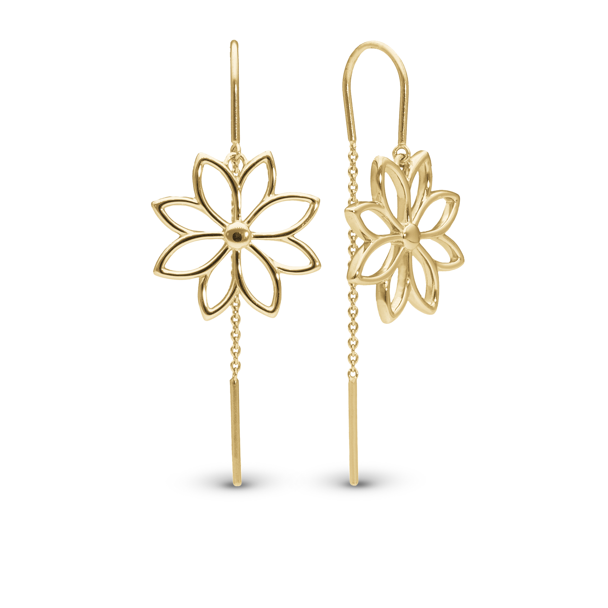 Simple Flower Dangle Earring - Polished Gold Plated Sterling Silver