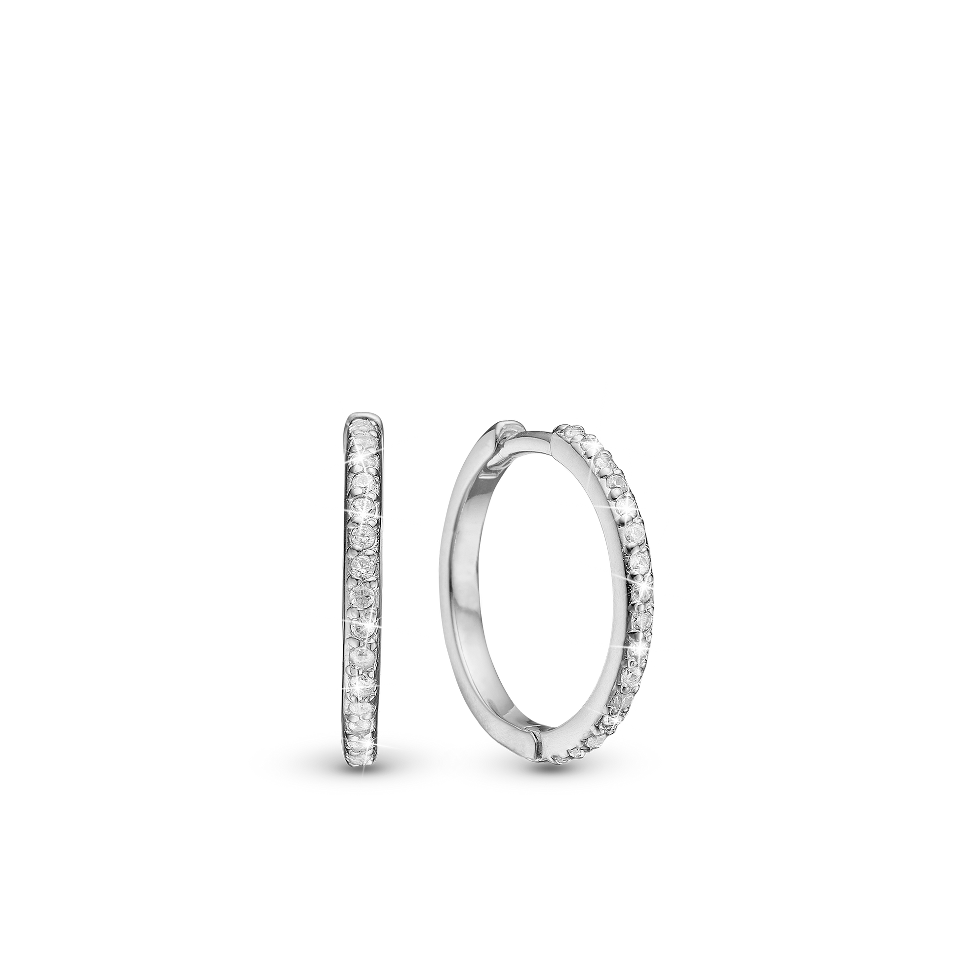 Twinkle Hoops - Polished Sterling Silver with 24 white Cubic Zirkonia