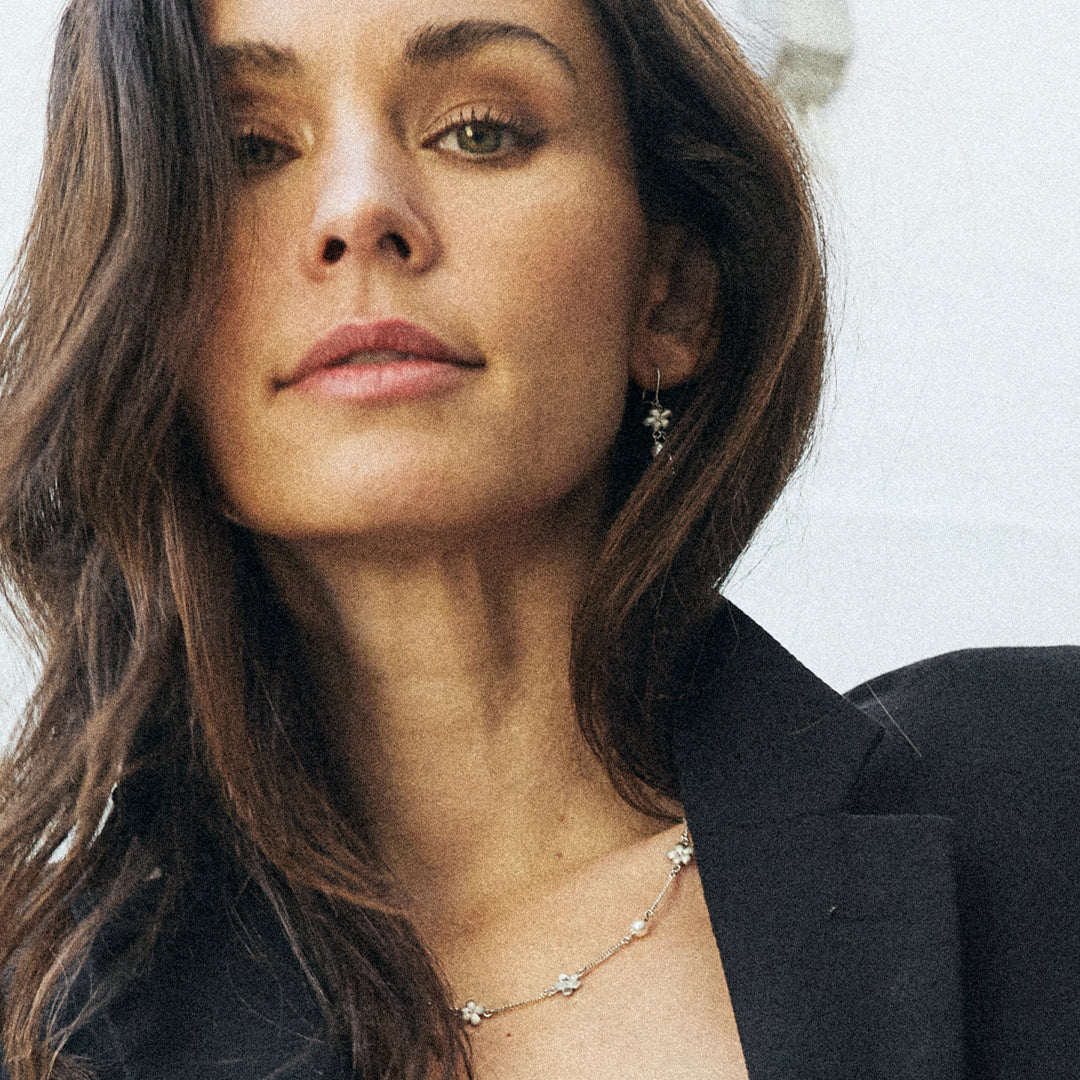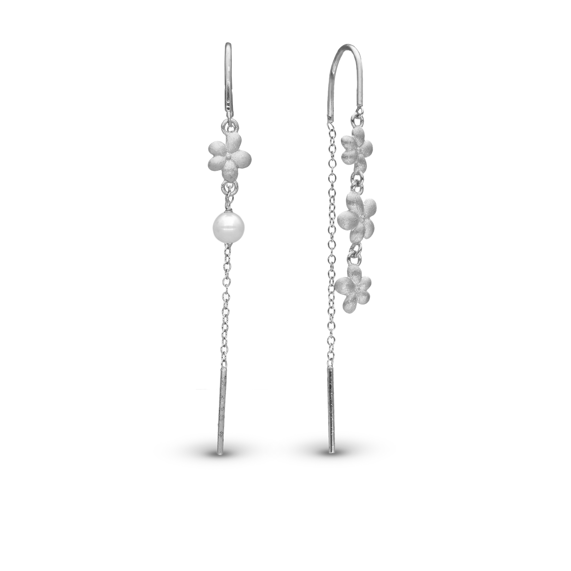 Graceful Flowers Dangle Earring - Matte Sterling Silver with 1 Ferskvandsperle