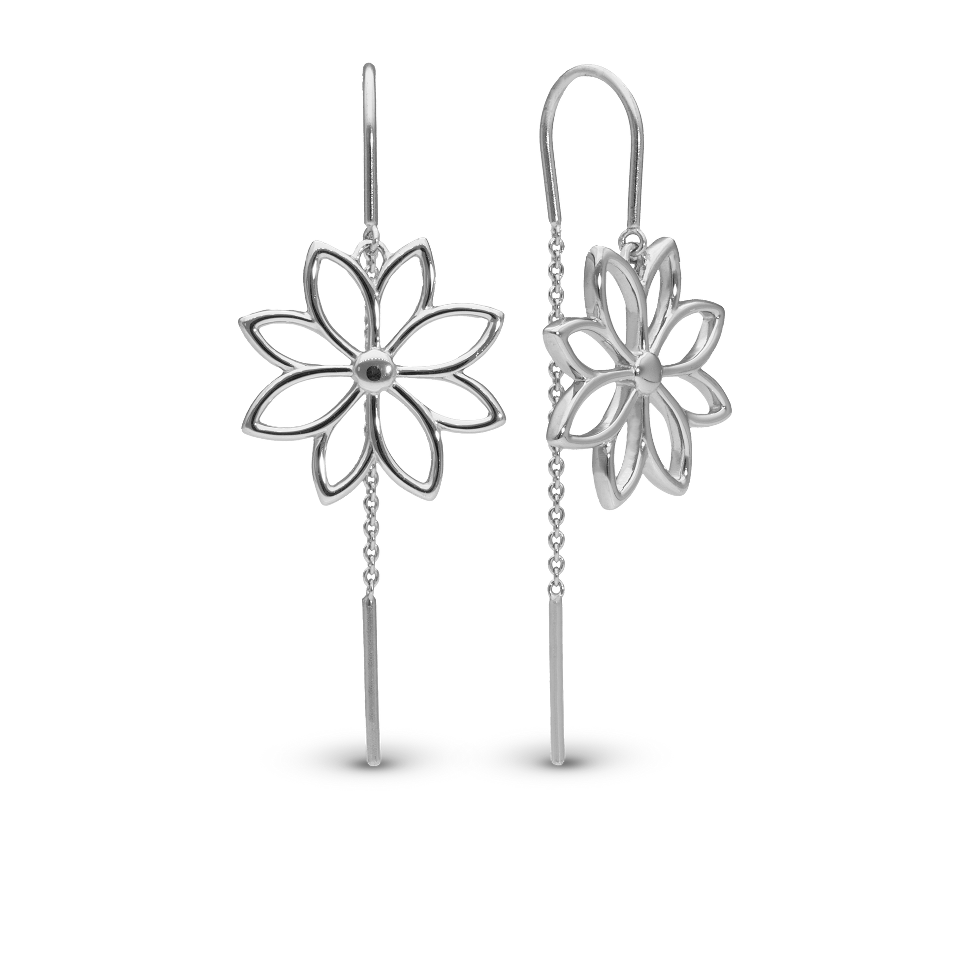 Simple Flower Dangle Earring - Polished Sterling Silver