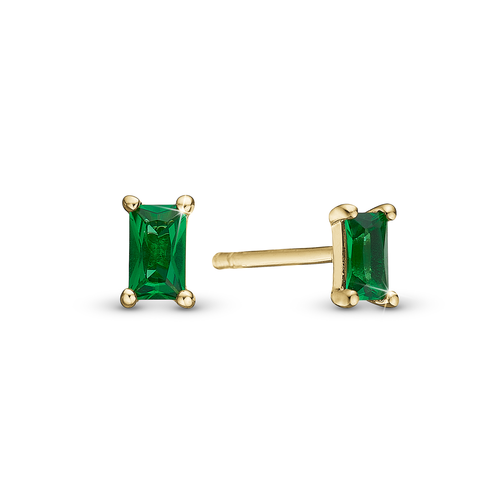 Green Baguette Stud Earrings - Polished Gold Plated Sterling Silver with 2 Greenne Cubic Zirkonia