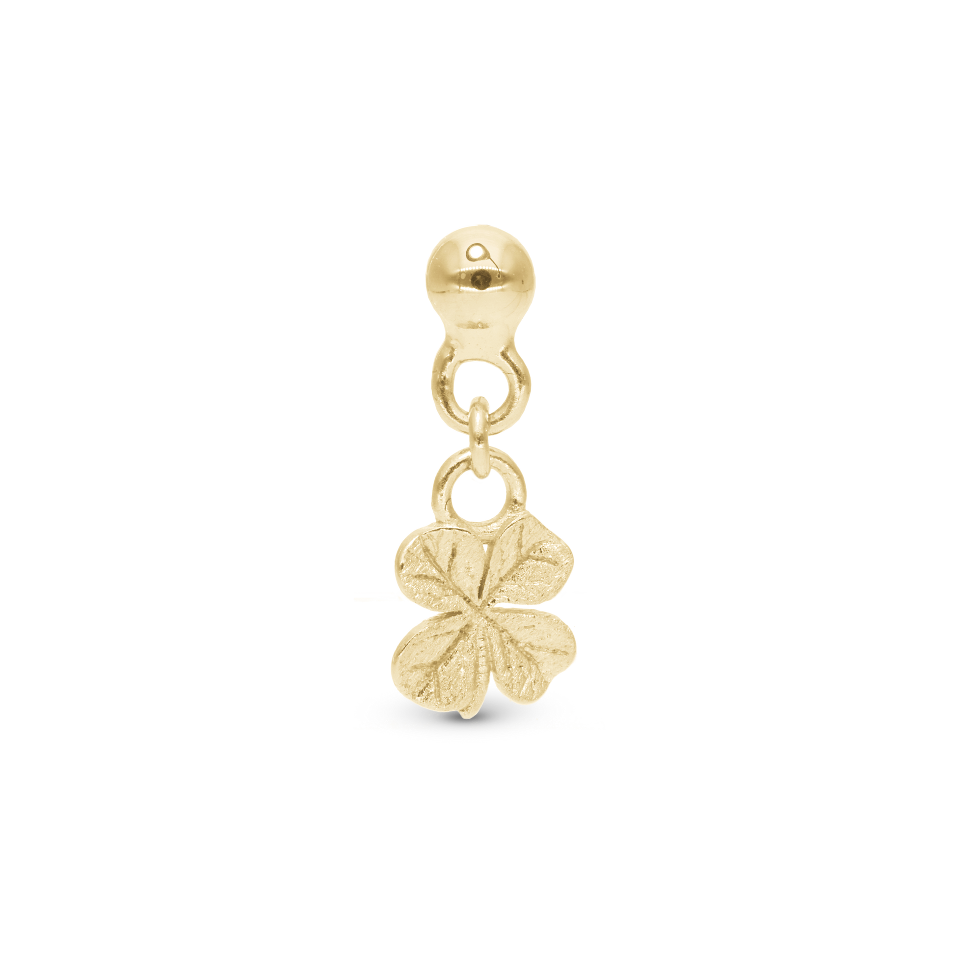 Dangling FoWatch Leaf Clover Simple Earring Stud / Single Stud - Brushed Gold Plated Sterling Silver