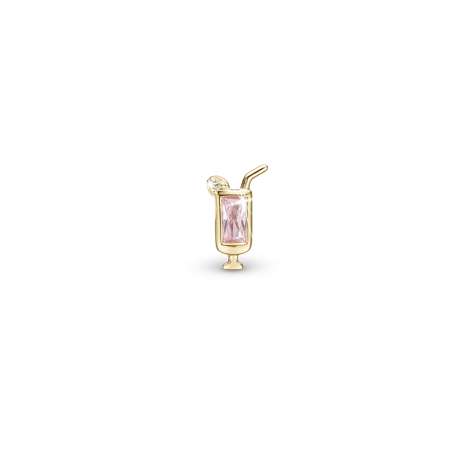 Pink Drink Simple Earring Stud / Single Stud - Gold Plated Sterling Silver with 2 Greenne Cubic Zirkonia