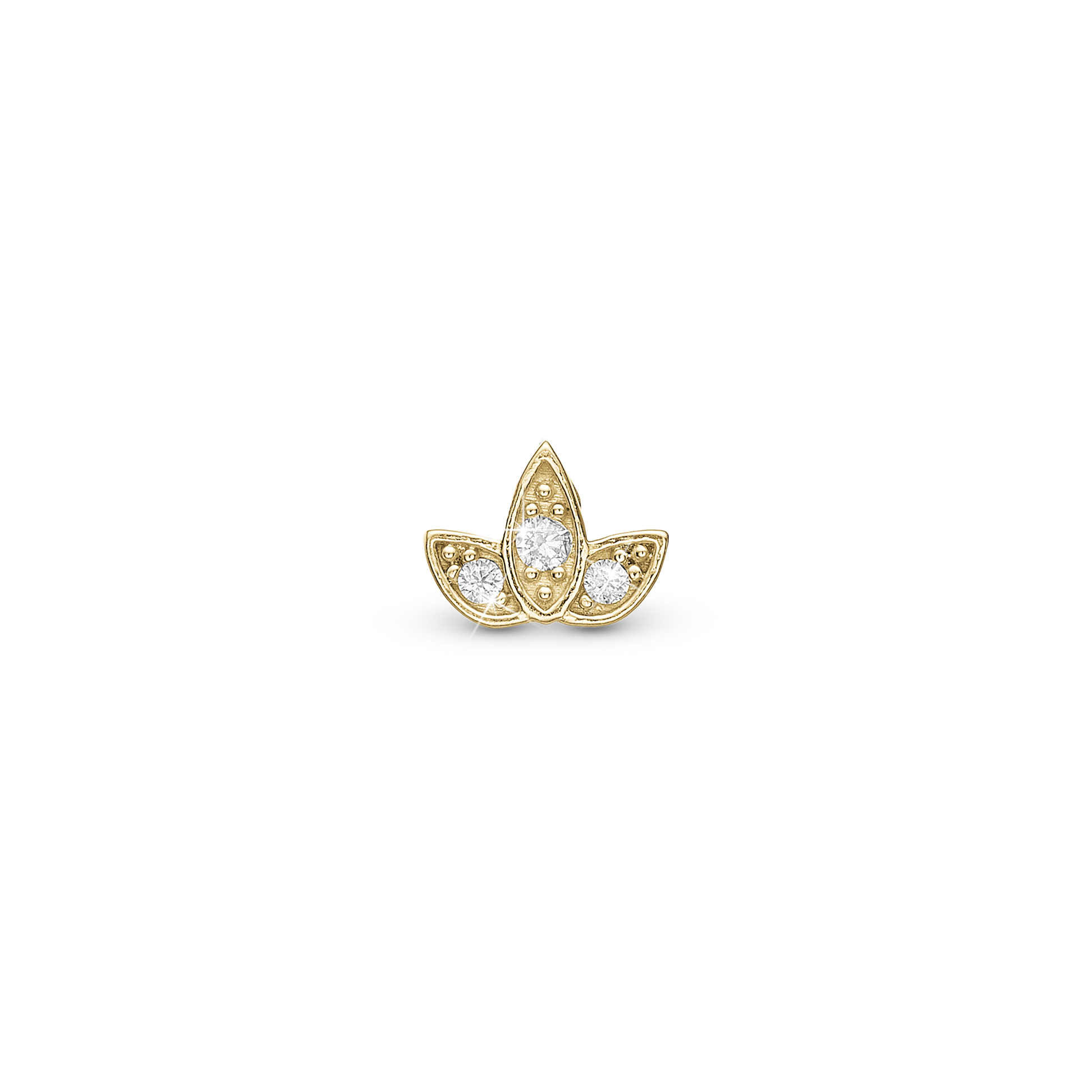 Flower Simple Earring Stud / Single Stud - Gold Plated Sterling Silver with 3 white Cubic Zirkonia