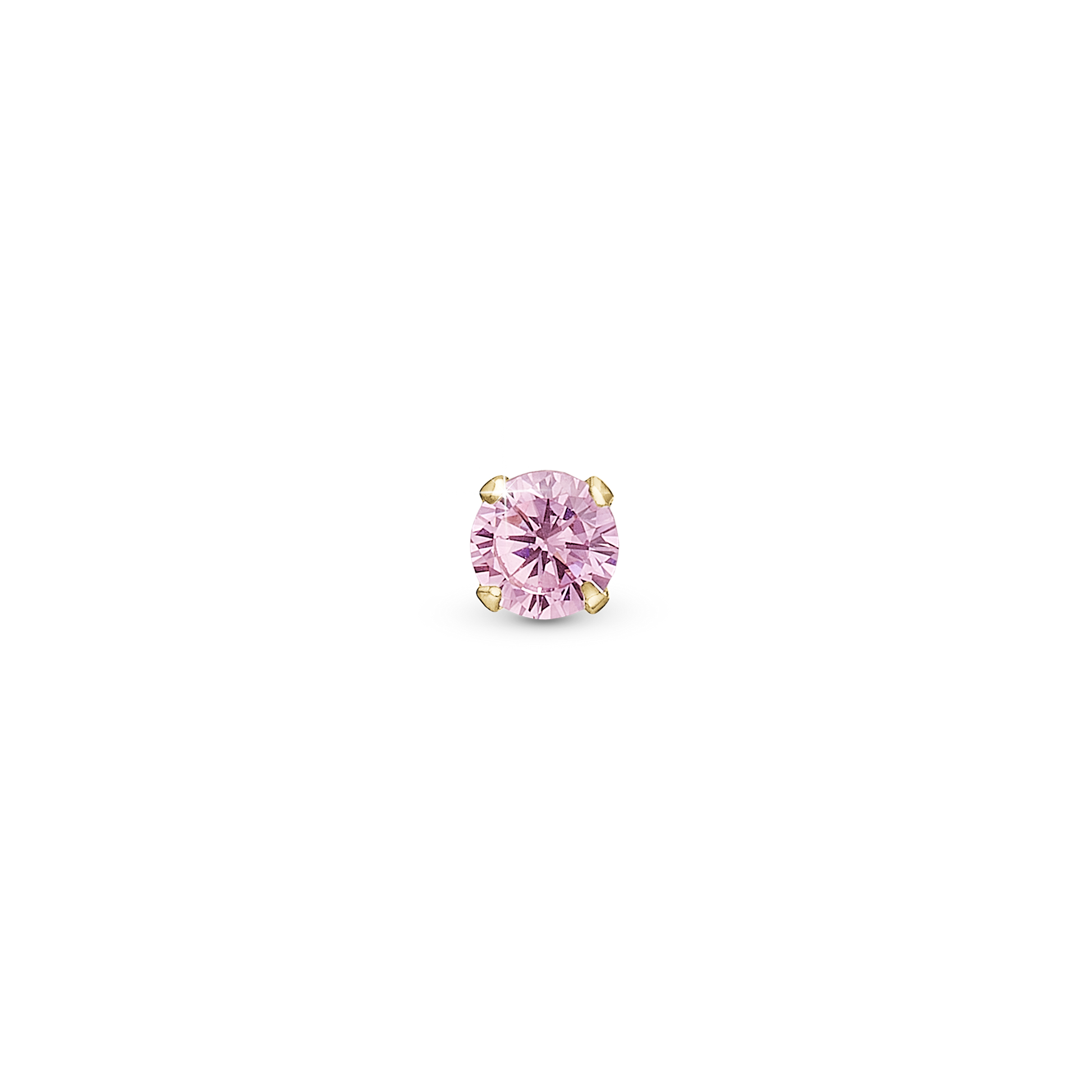 Pink Delight Simple Earring Stud / Single Stud - Polished Gold Plated Sterling Silver with 1 Cubic Zirkonia