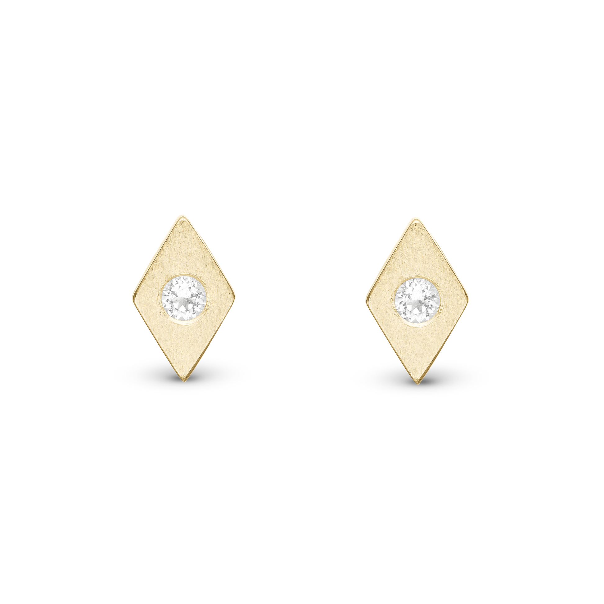 Topaz Kites Stud Earrings - Gold Plated Stud Earrings - Matte Gold Plated Sterling Silver with 2 white Topas