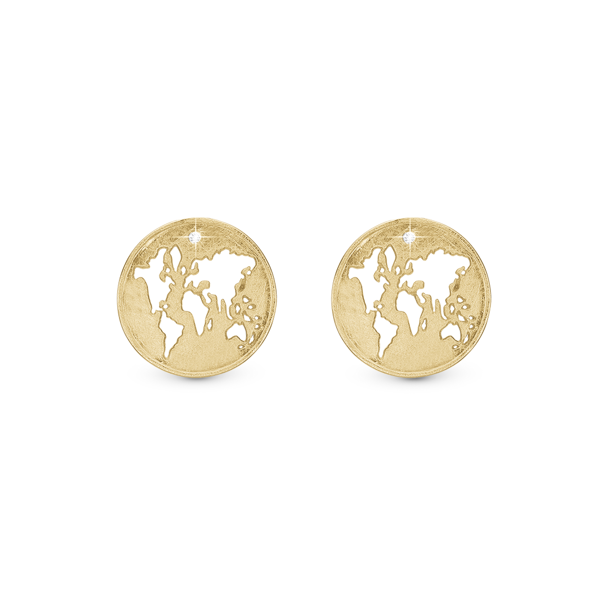 The World Stud Earrings - Gold Plated Sterling Silver with 2 Labgrown Diamant