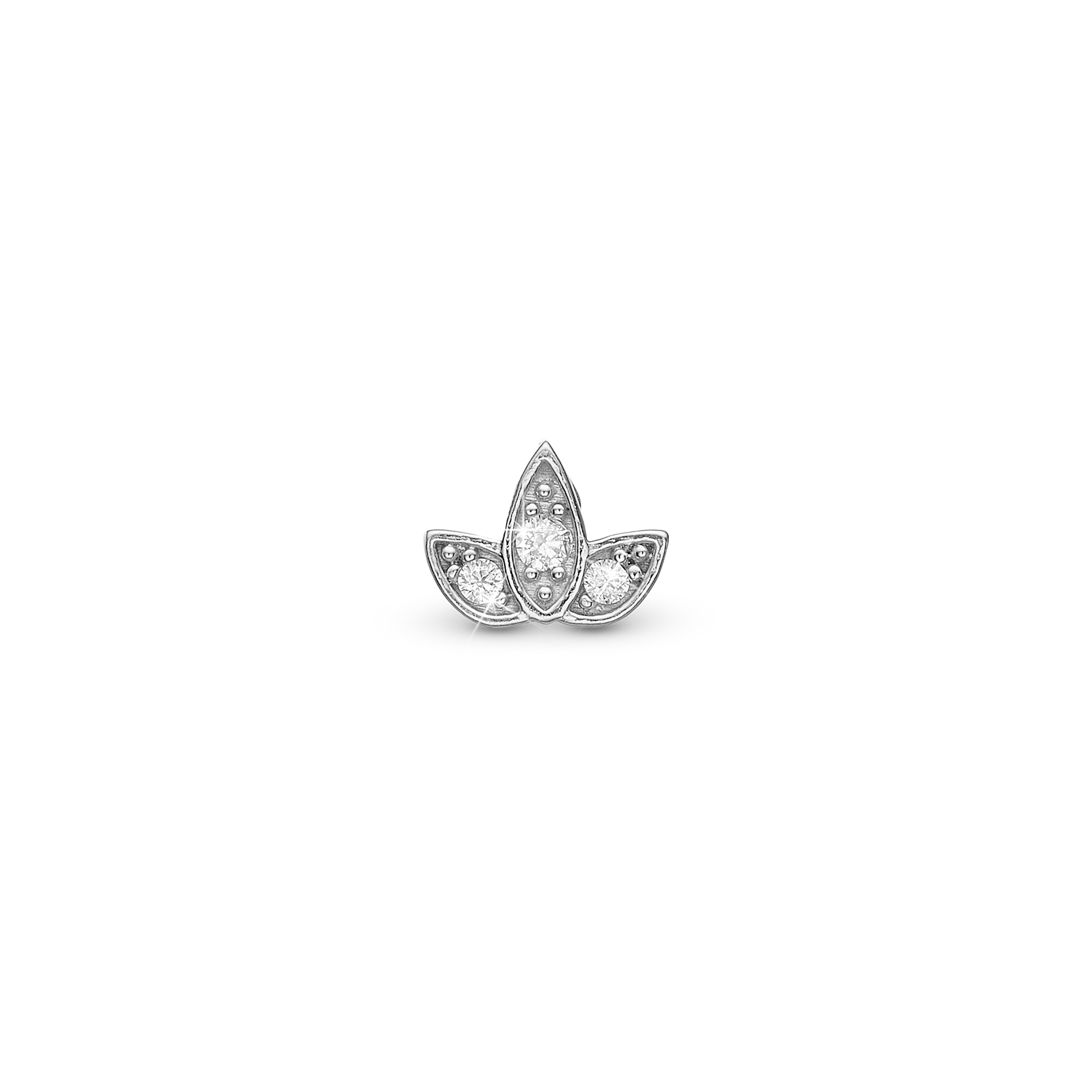 Flower Simple Earring Stud / Single Stud - Sterling Silver with 3 white Cubic Zirkonia
